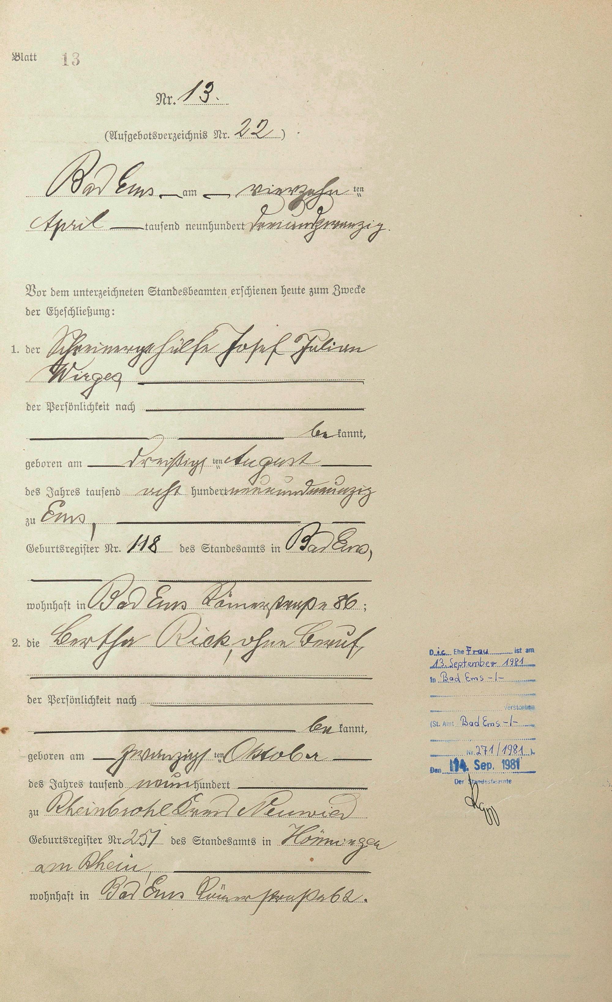 1399: Heiratsregister 1923