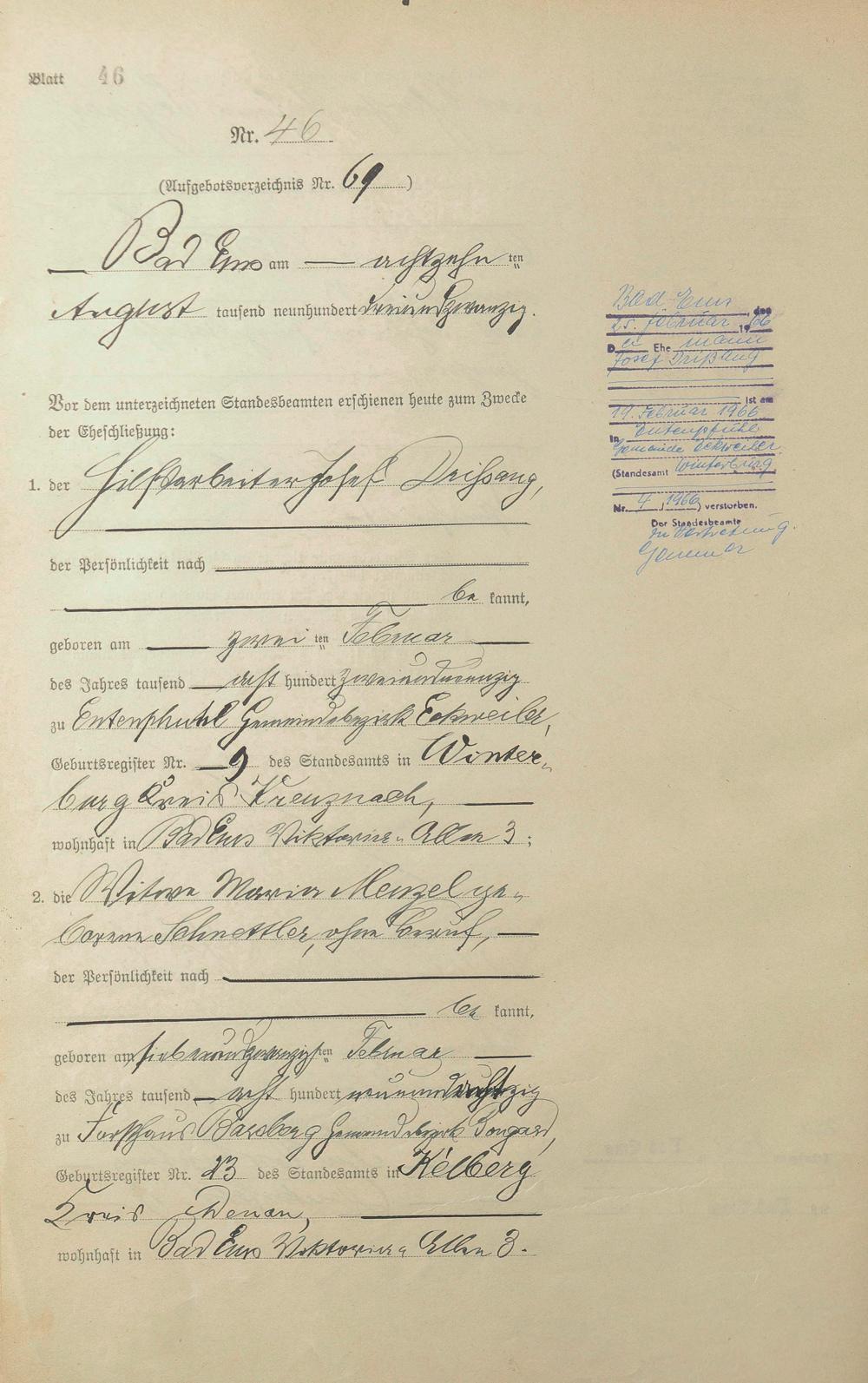 1399: Heiratsregister 1923