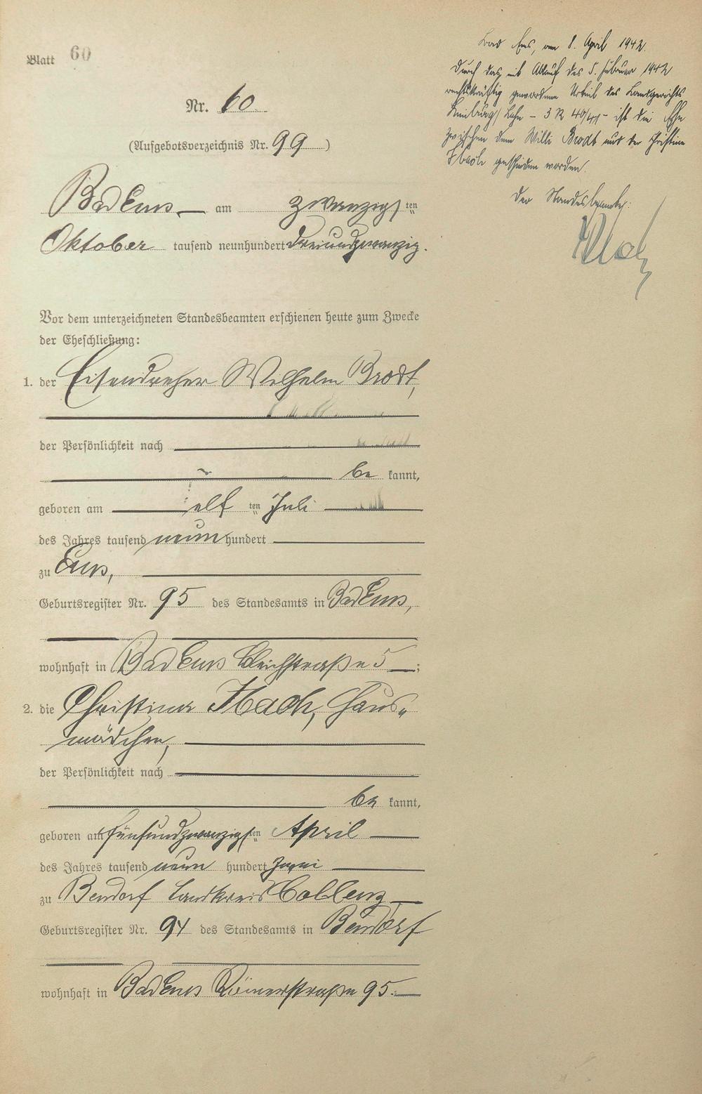 1399: Heiratsregister 1923