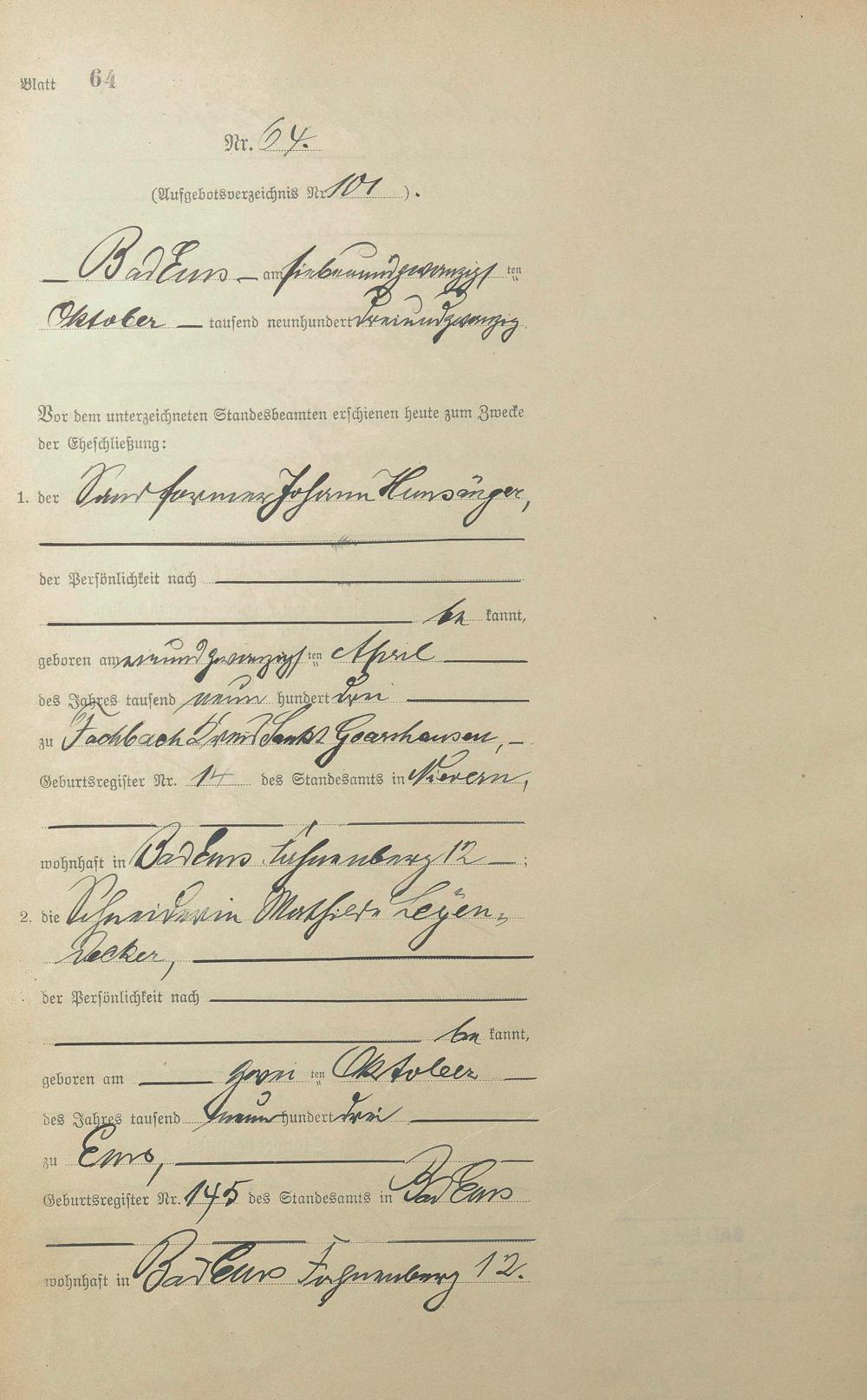 Heiratsregister 1923