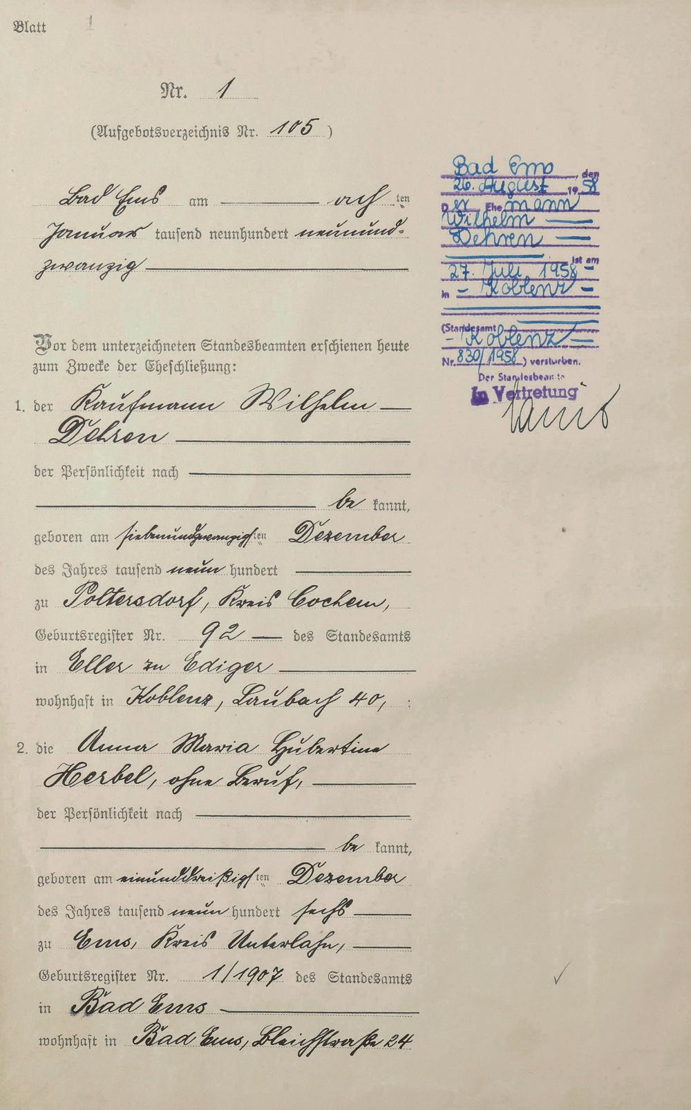 1405: Heiratsregister 1929