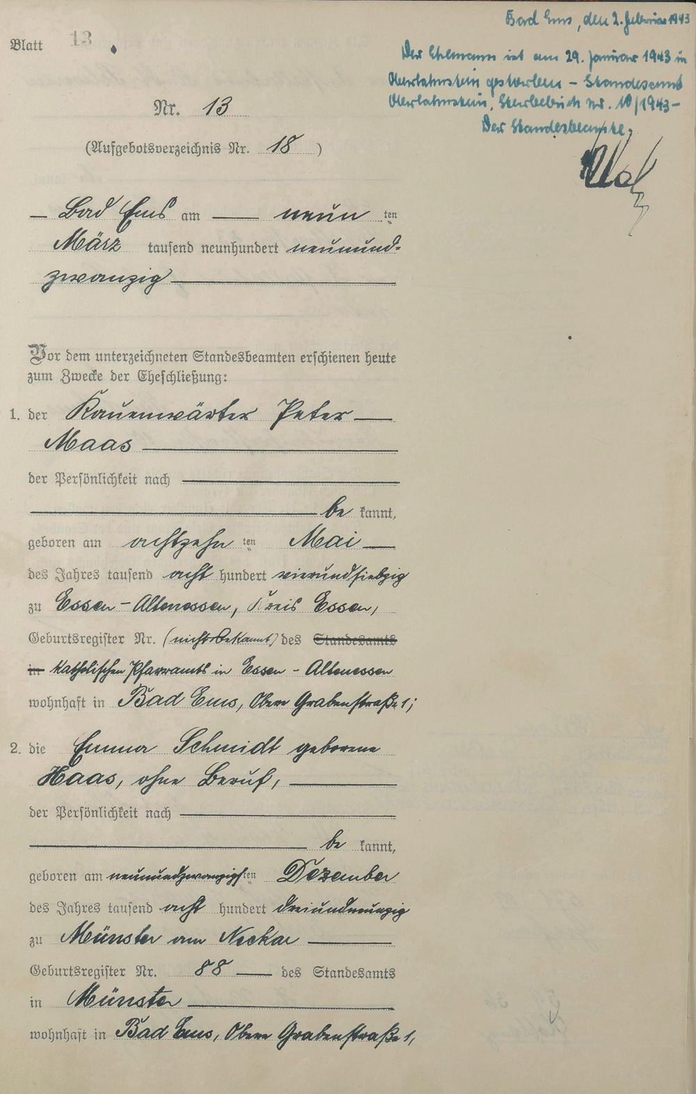 Heiratsregister 1929