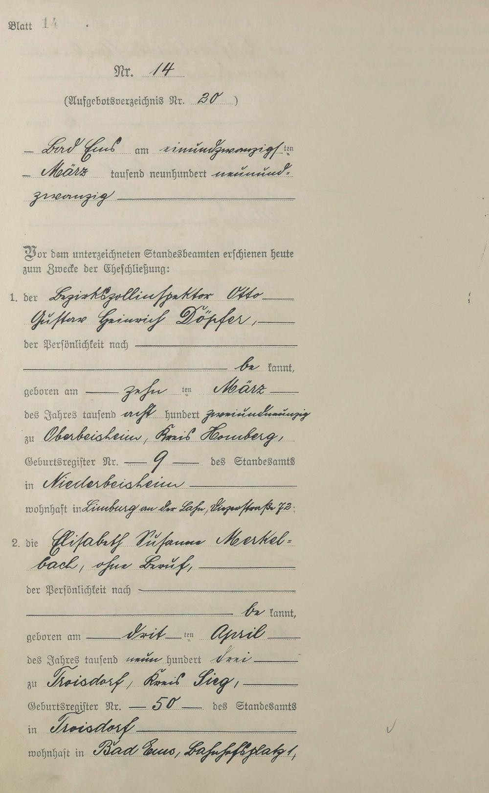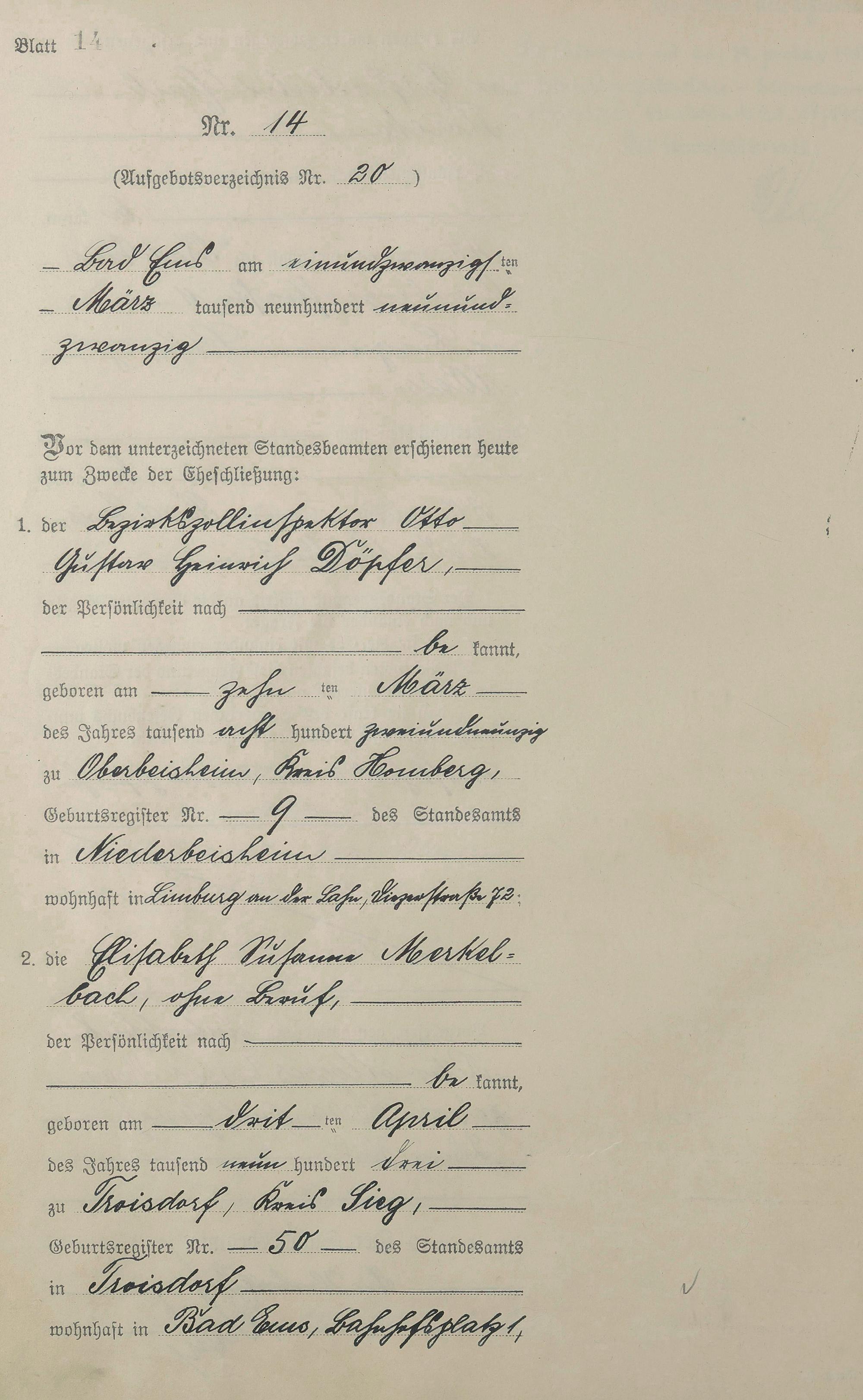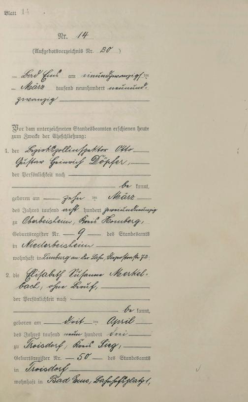 Heiratsregister 1929