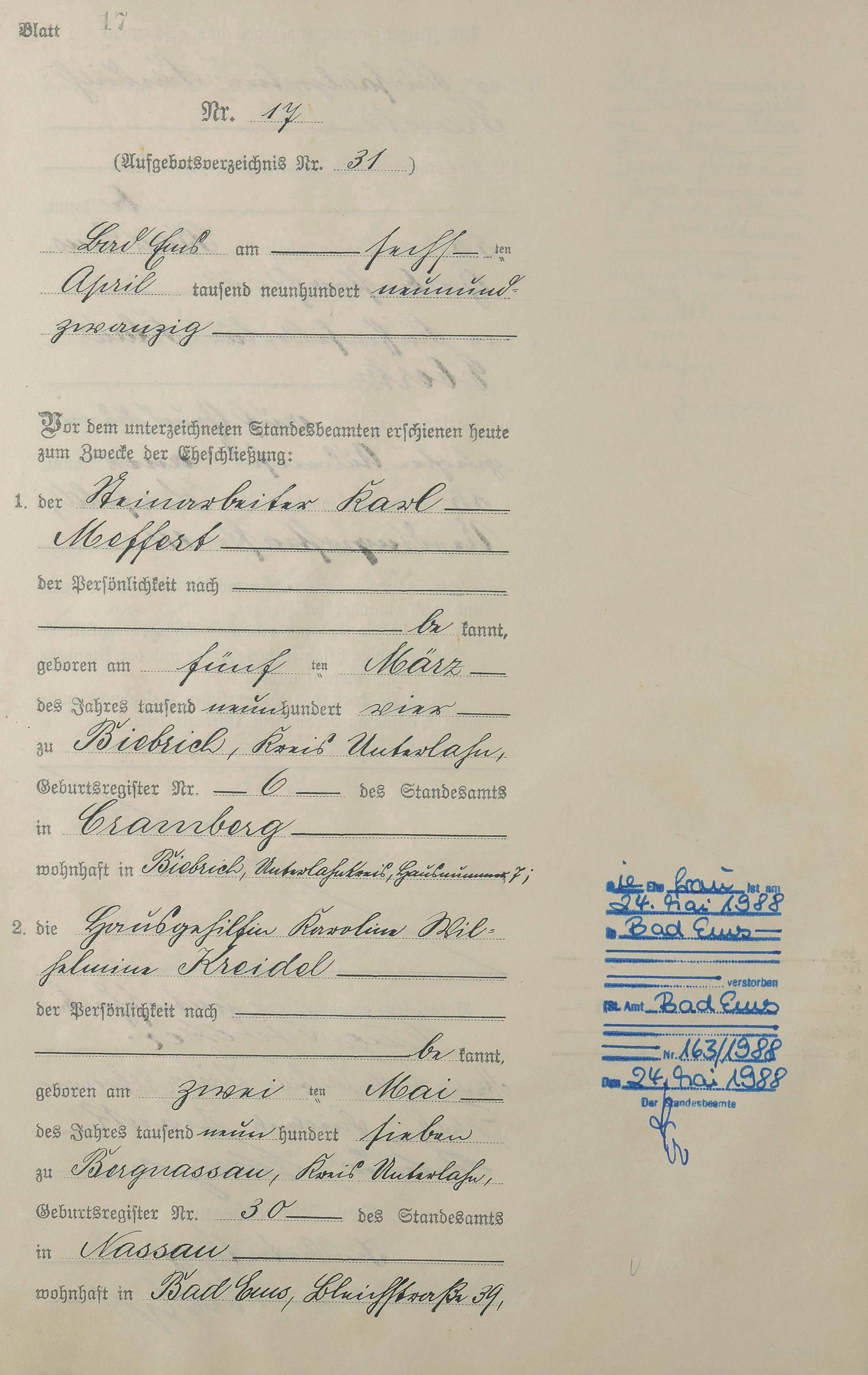 Heiratsregister 1929