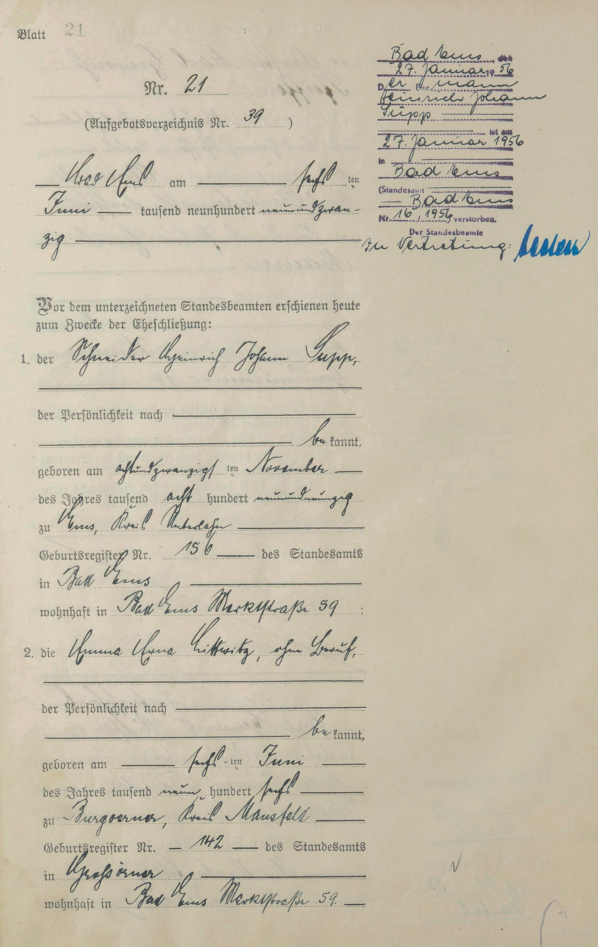 Heiratsregister 1929