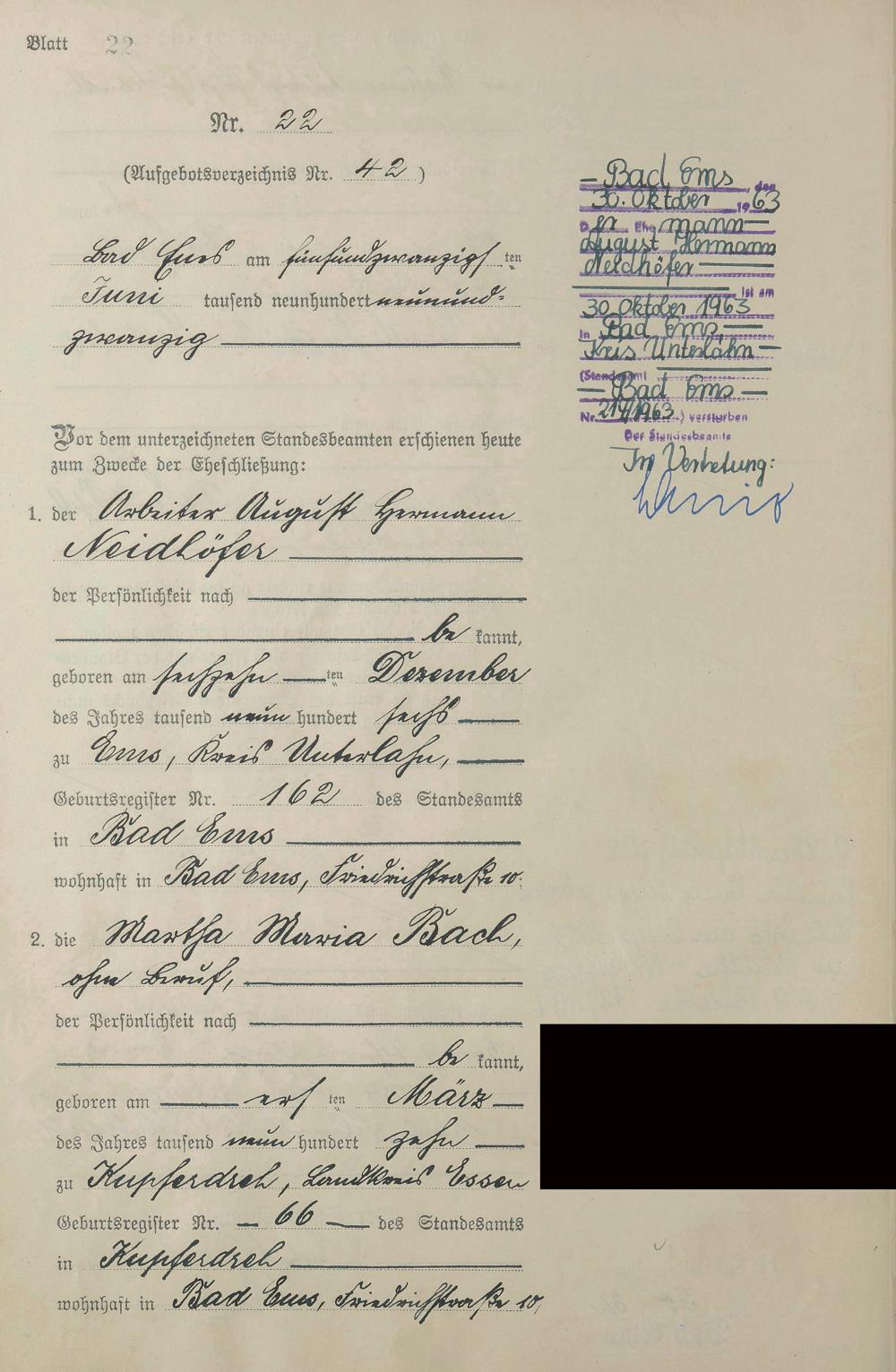 Heiratsregister 1929