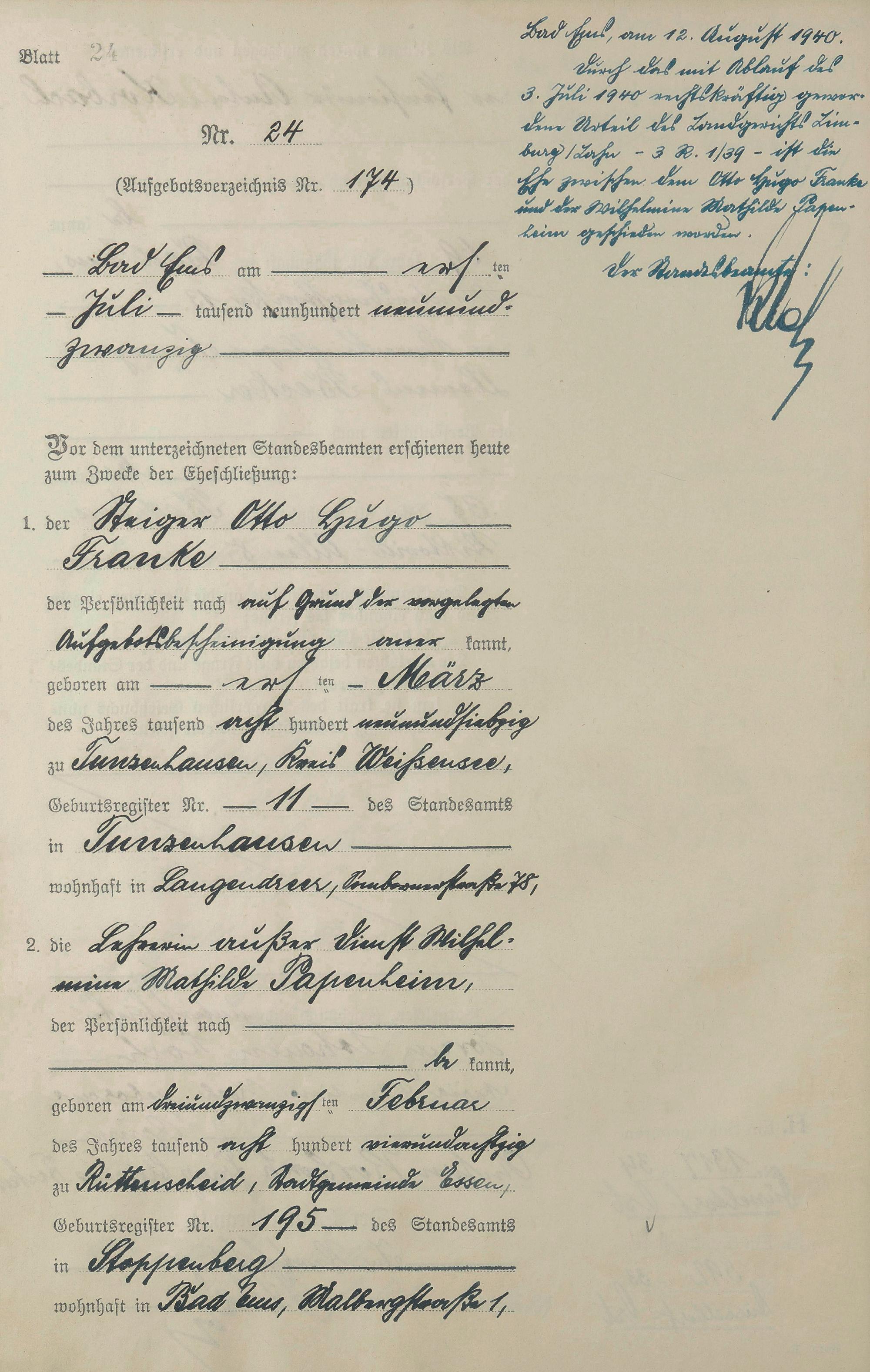 Heiratsregister 1929