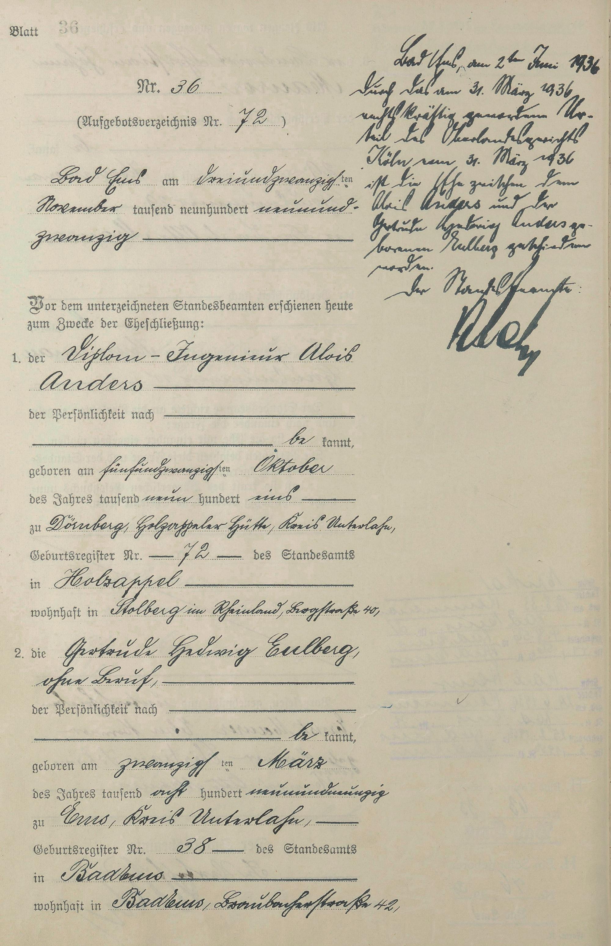 1405: Heiratsregister 1929