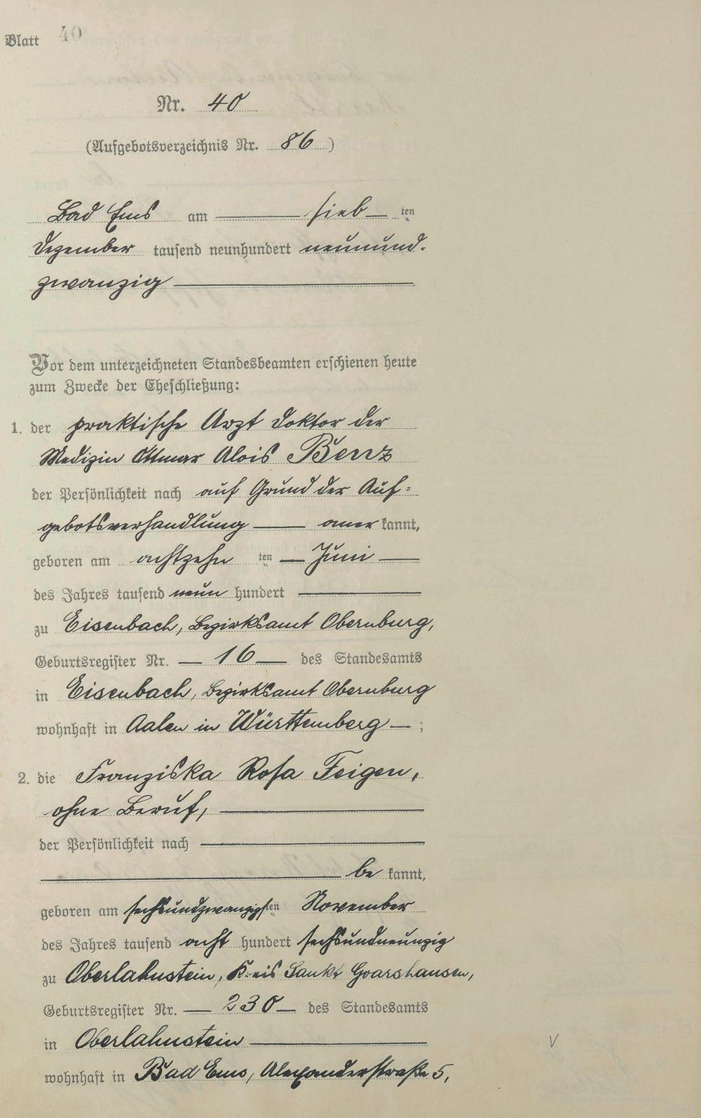 Heiratsregister 1929