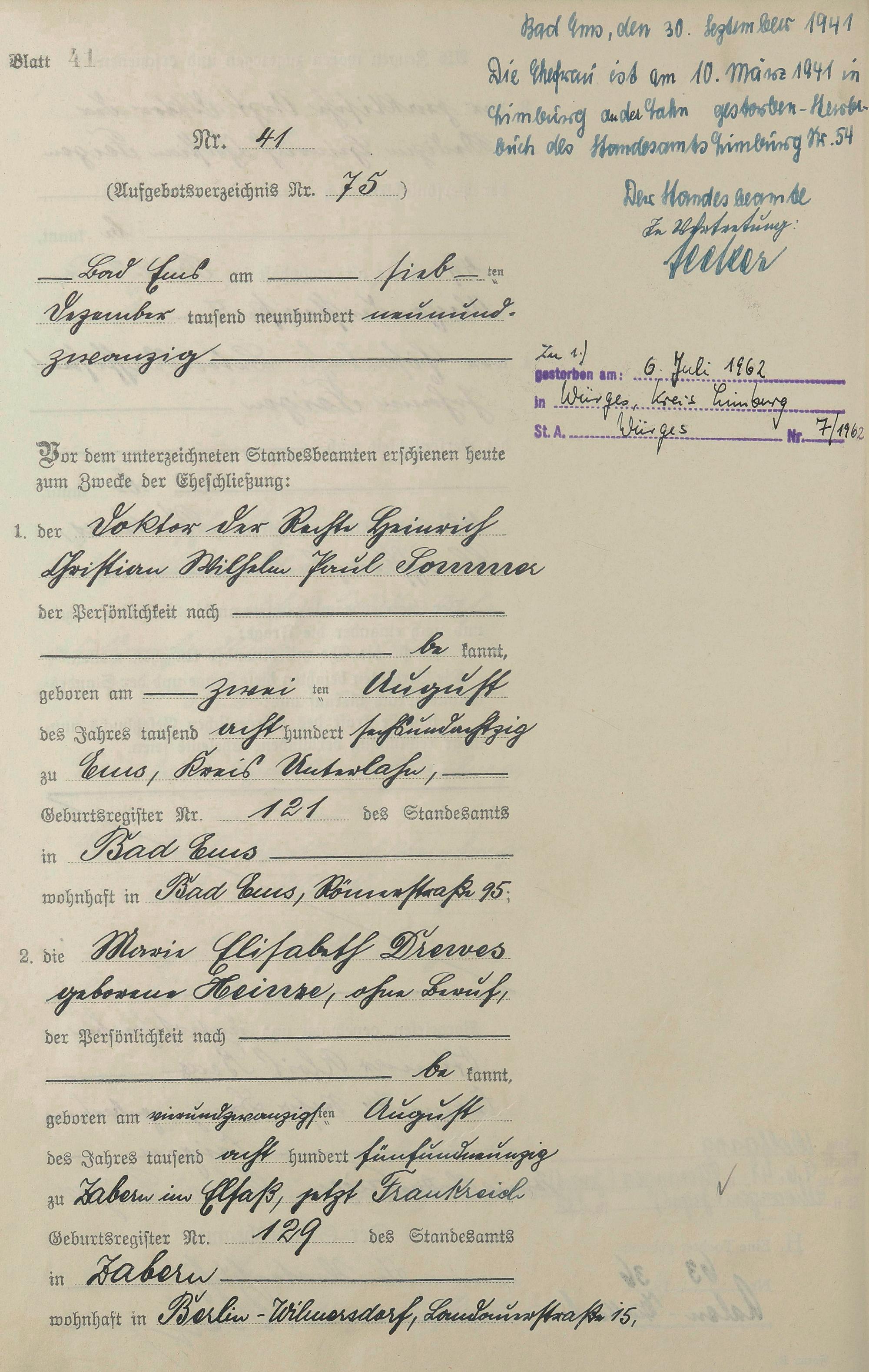 Heiratsregister 1929