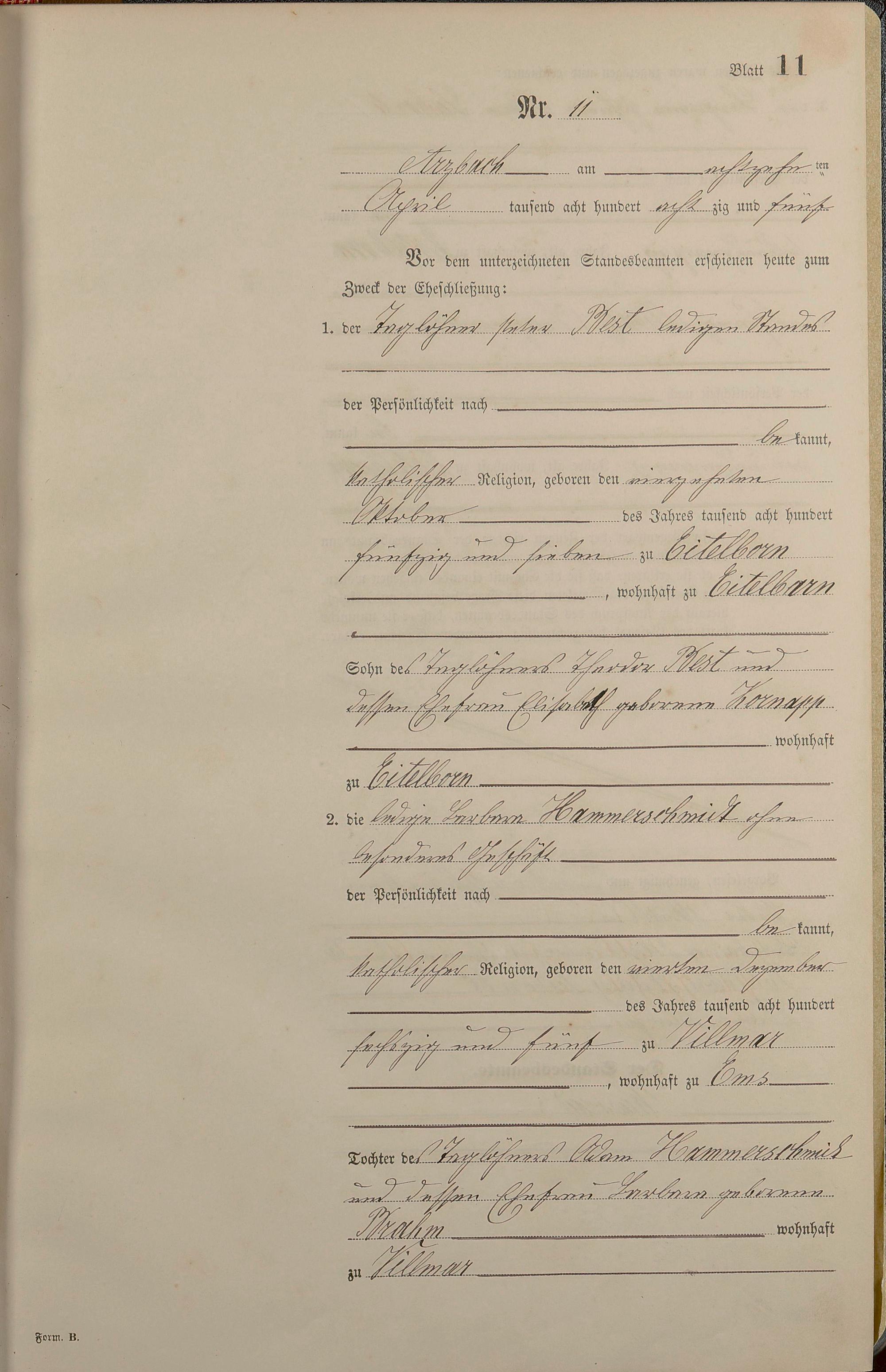 Heiratsregister 1885