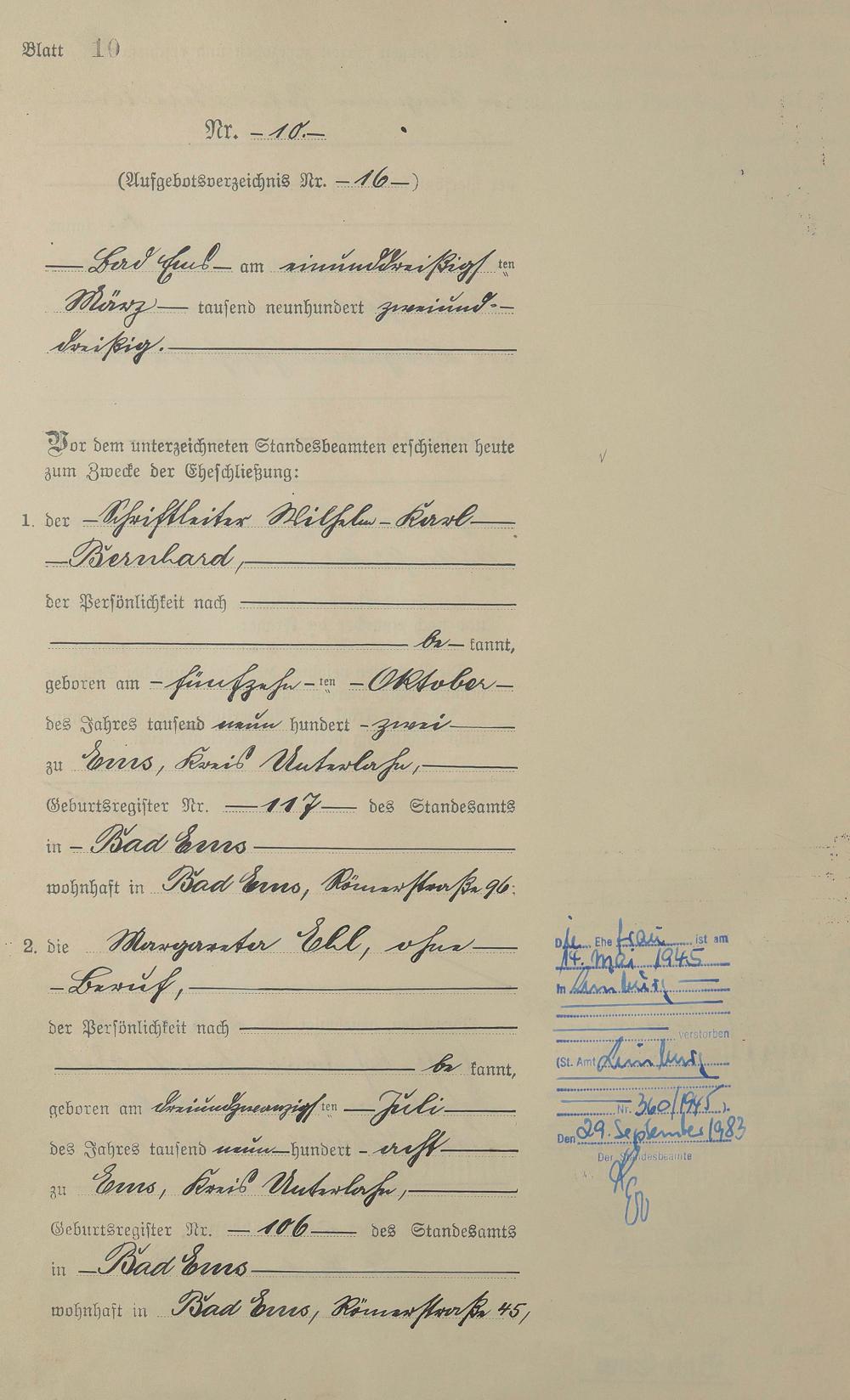 Heiratsregister 1932