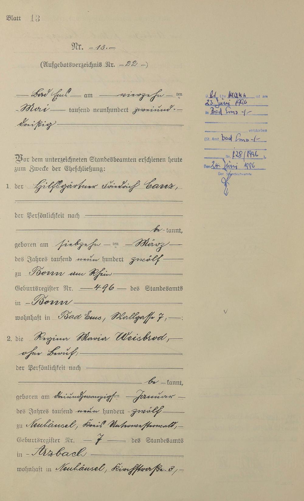 Heiratsregister 1932