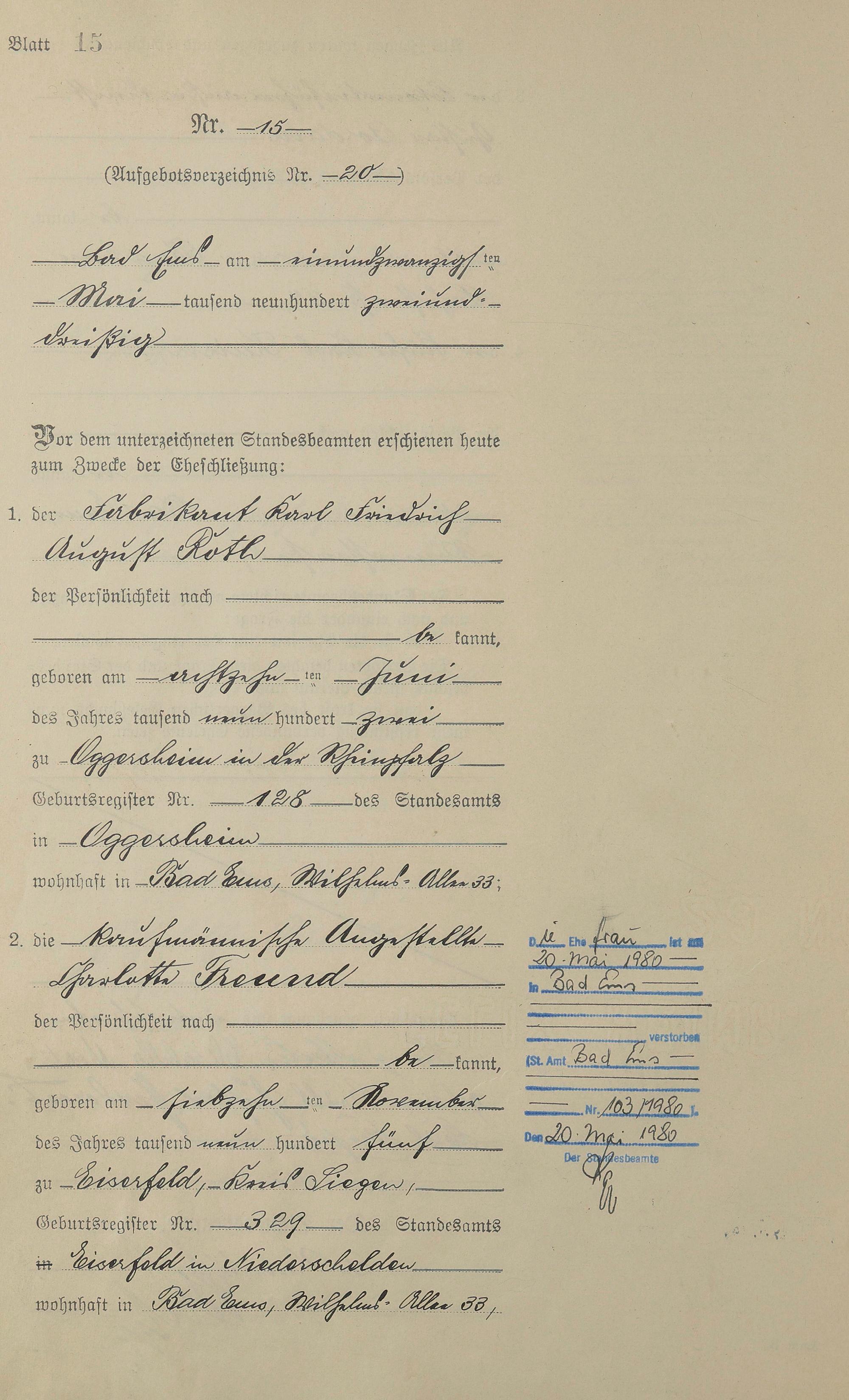 Heiratsregister 1932