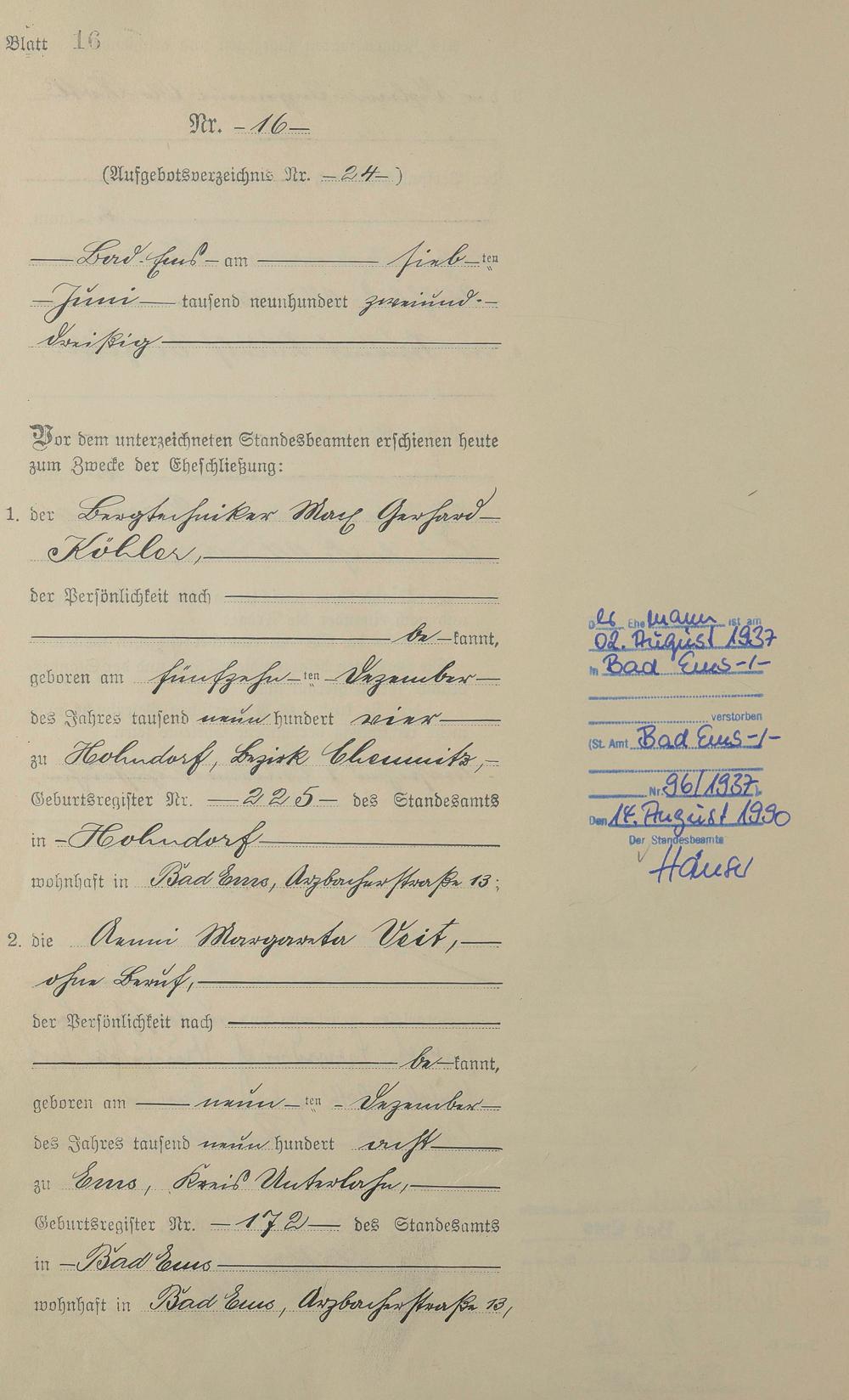 Heiratsregister 1932