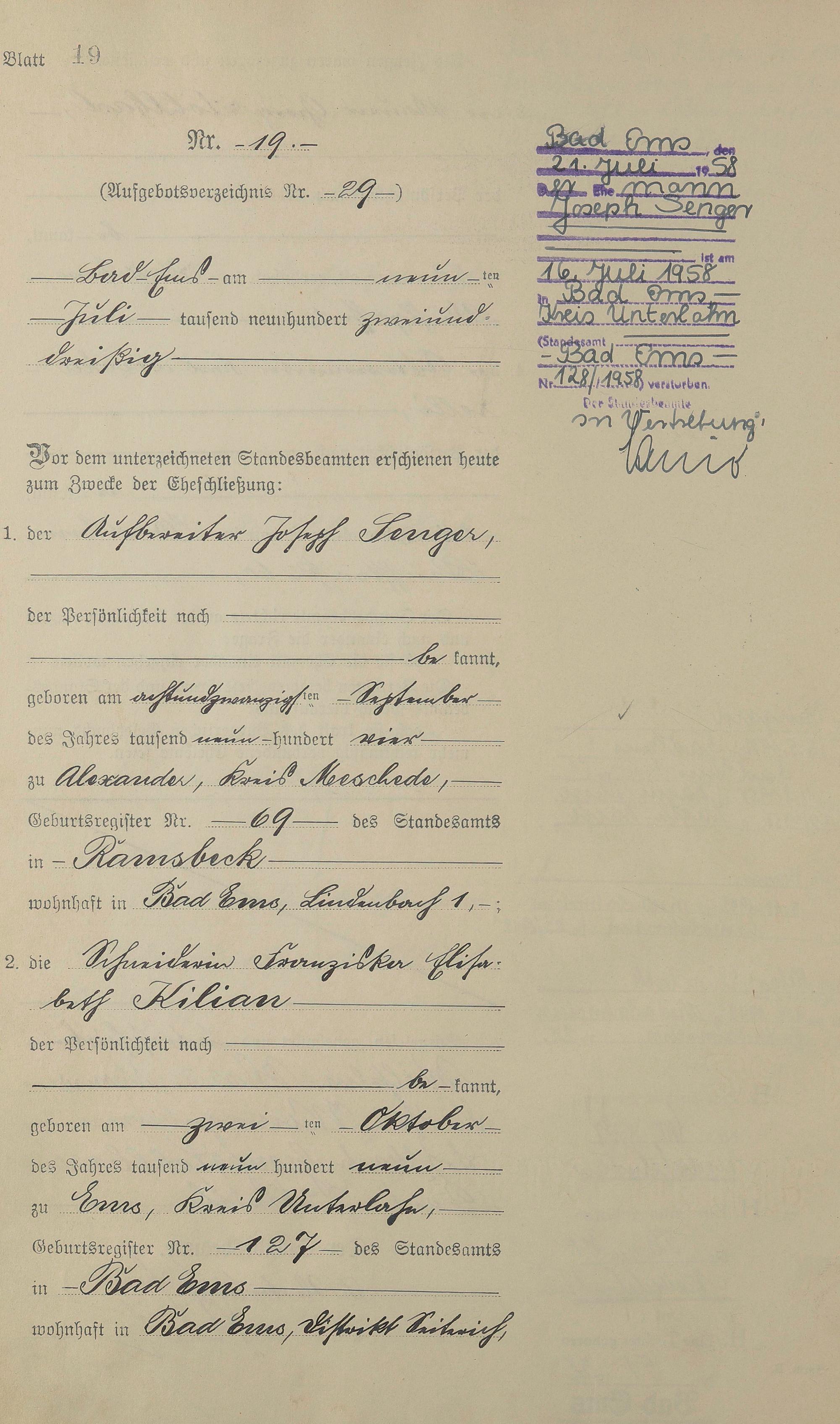 Heiratsregister 1932