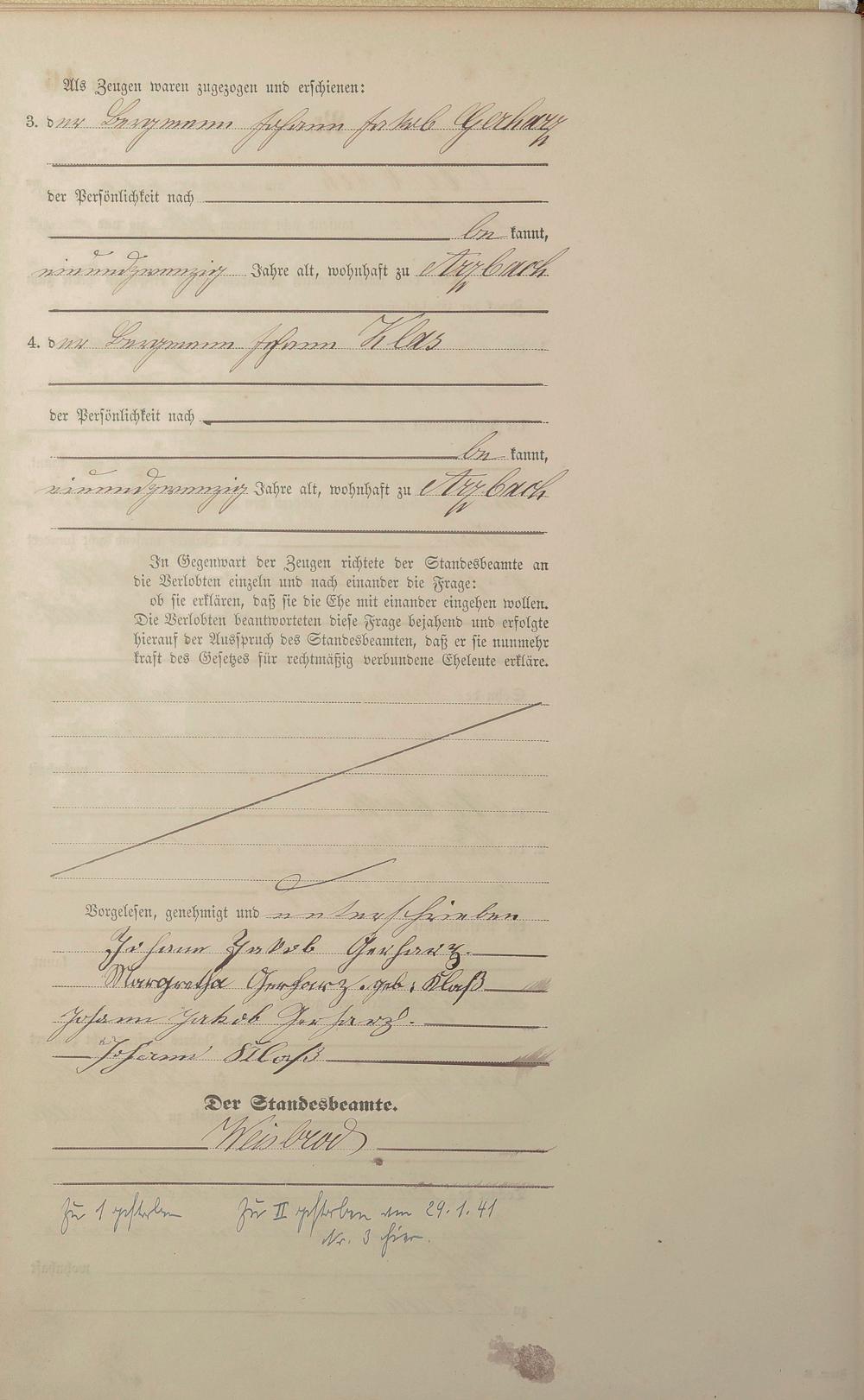 Heiratsregister 1885