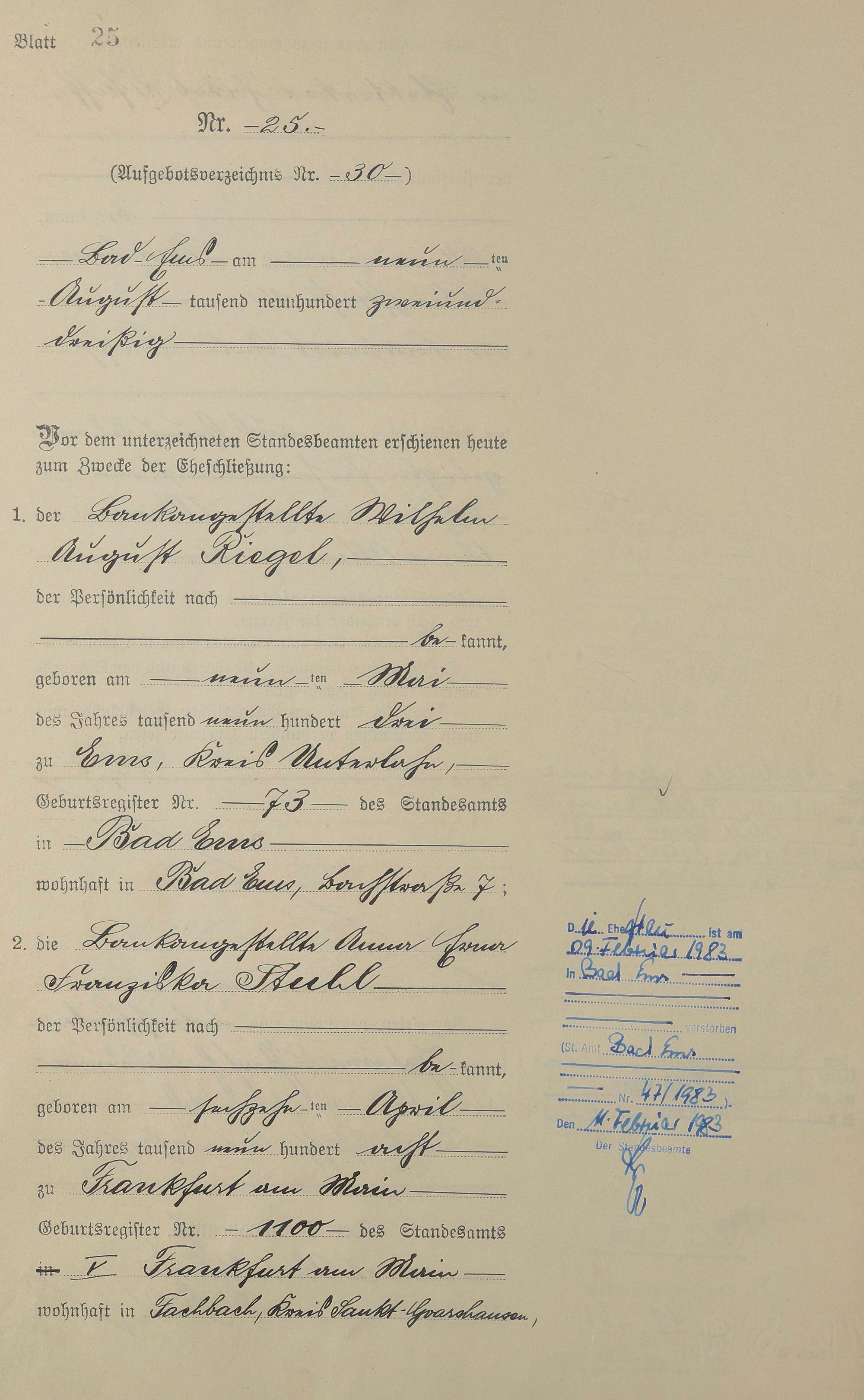 Heiratsregister 1932