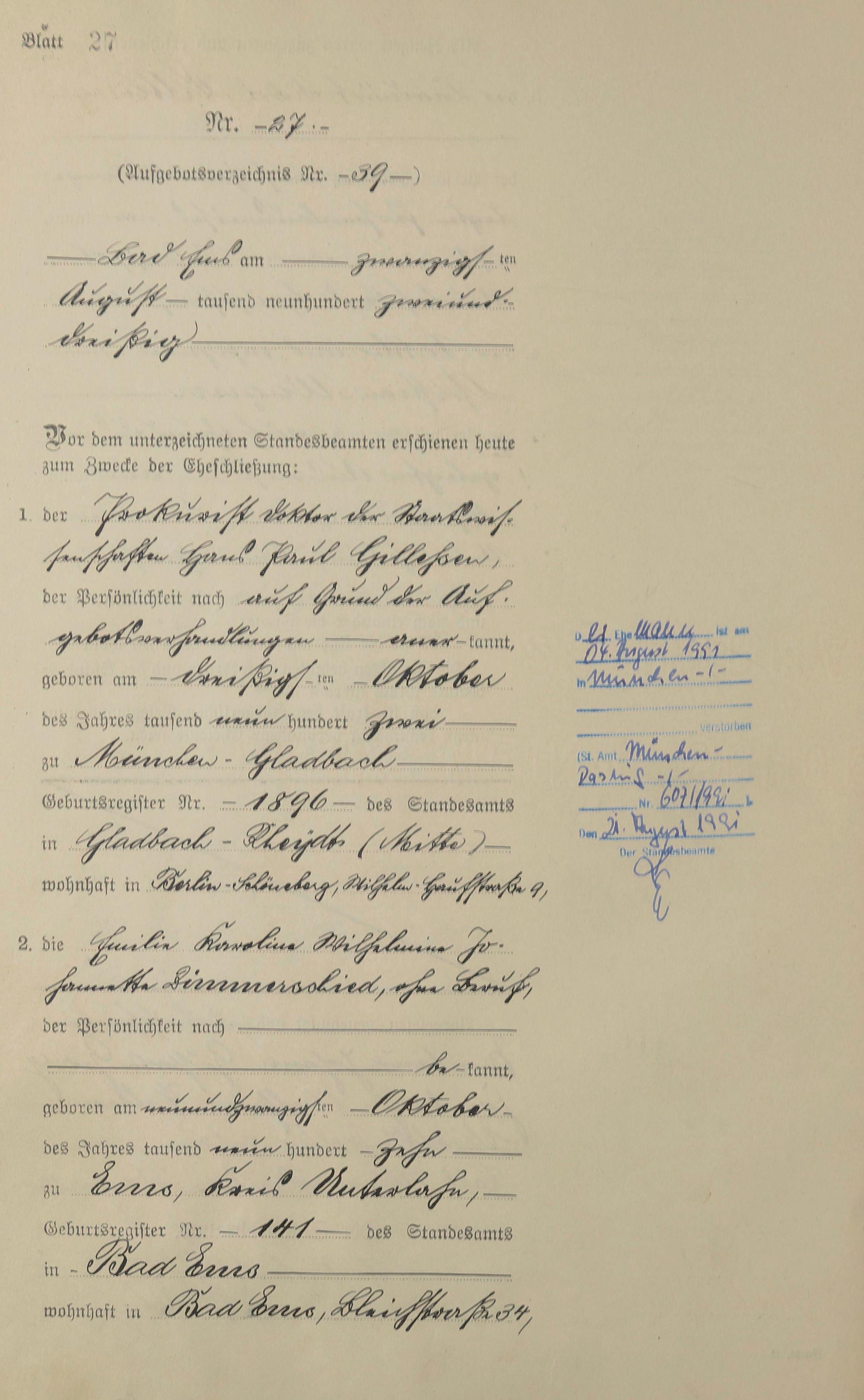 Heiratsregister 1932