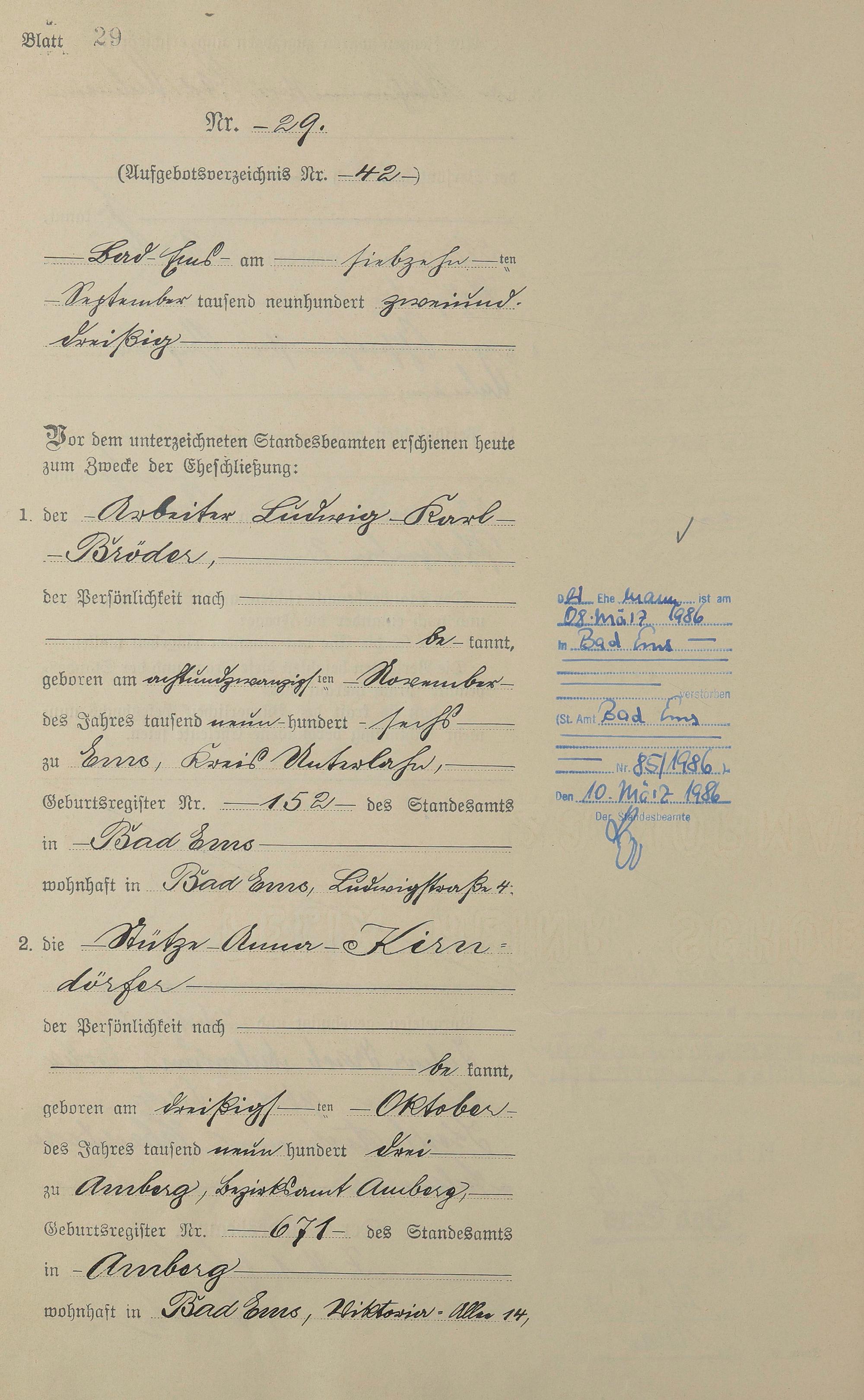 Heiratsregister 1932