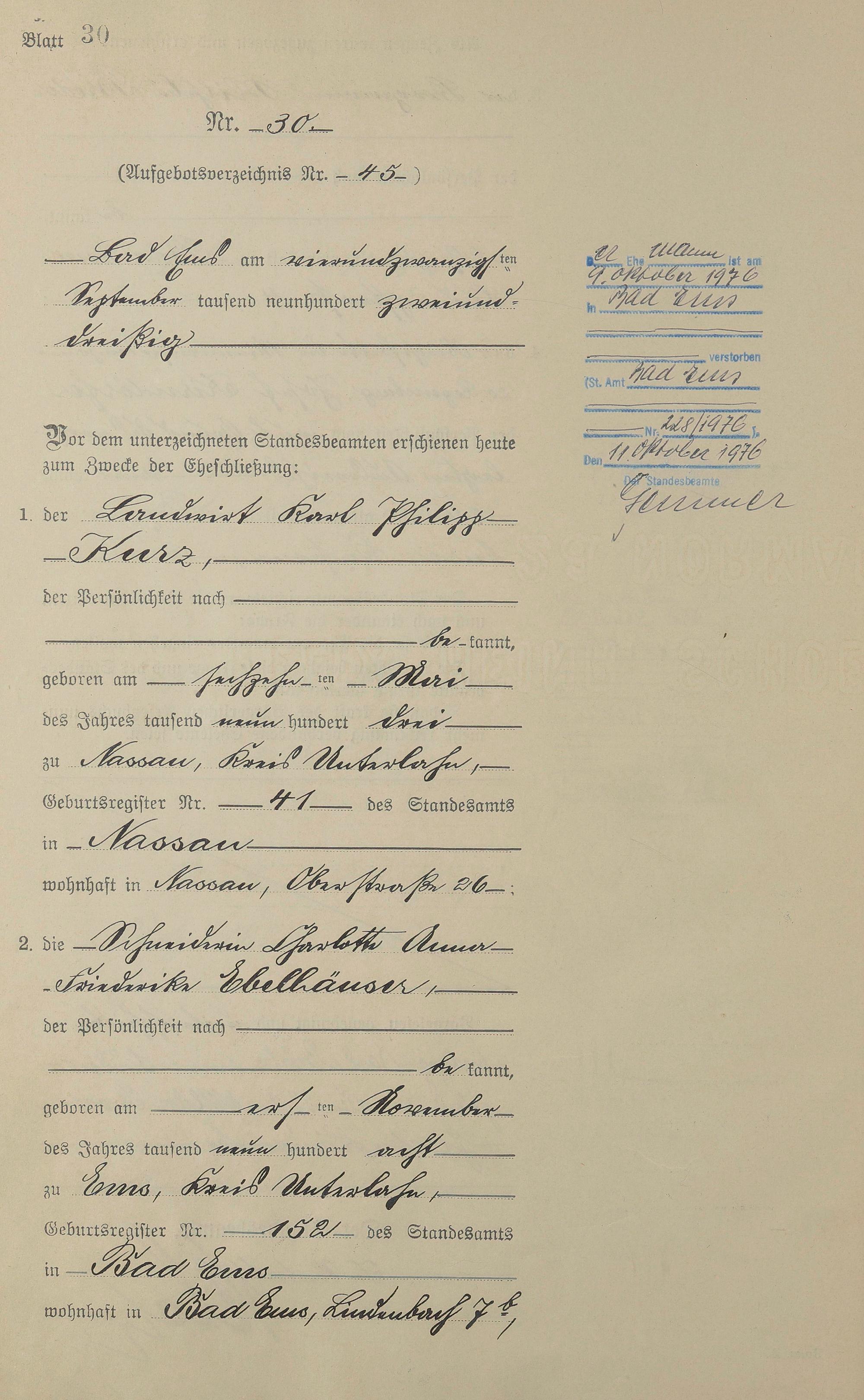 Heiratsregister 1932
