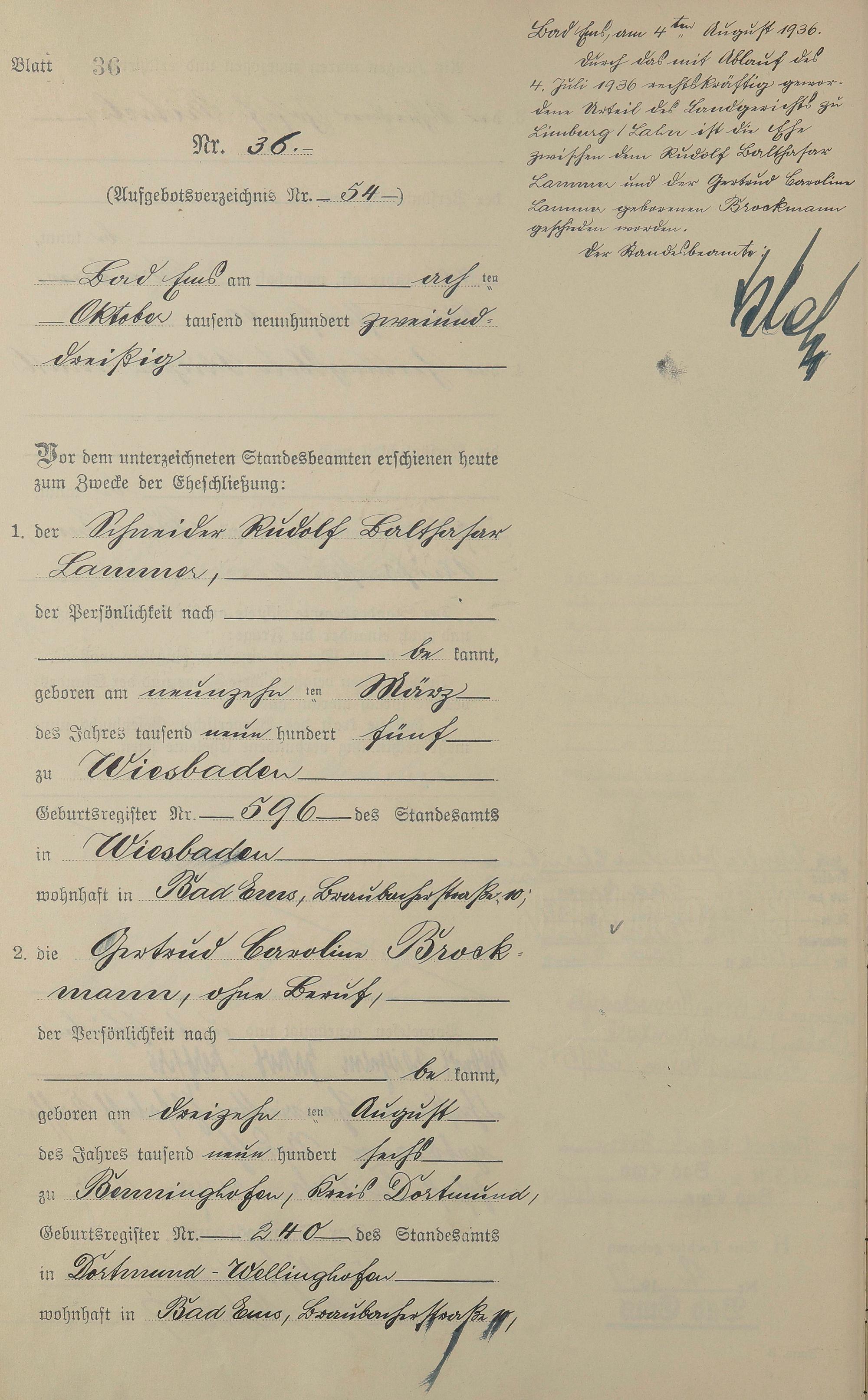 Heiratsregister 1932