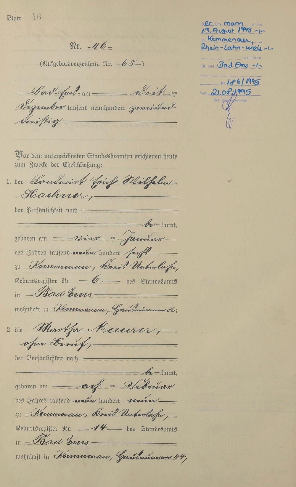 Heiratsregister 1932