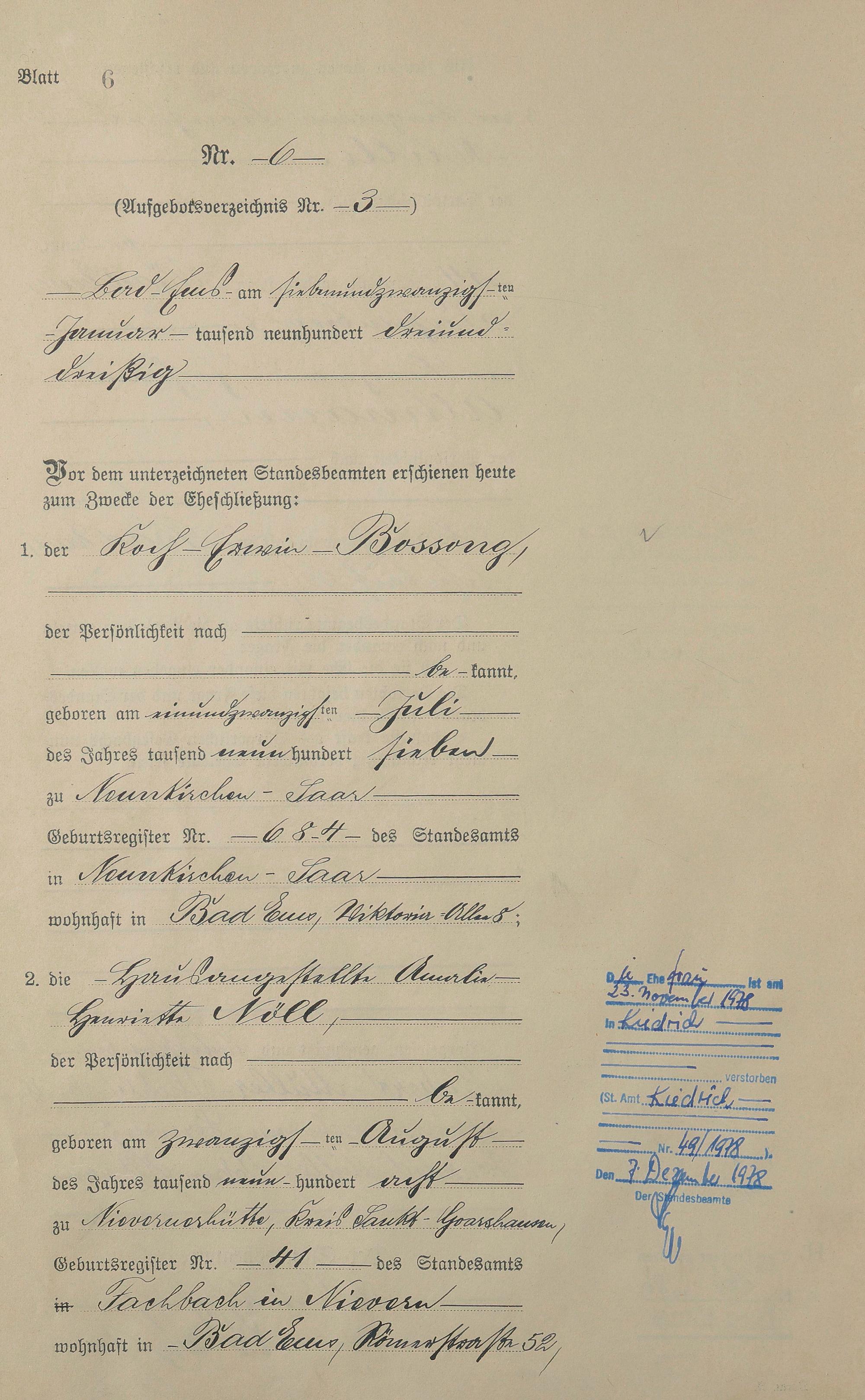 Heiratsregister 1933