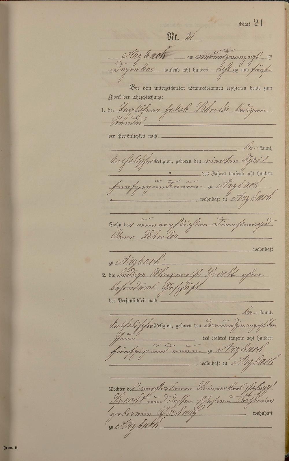 Heiratsregister 1885