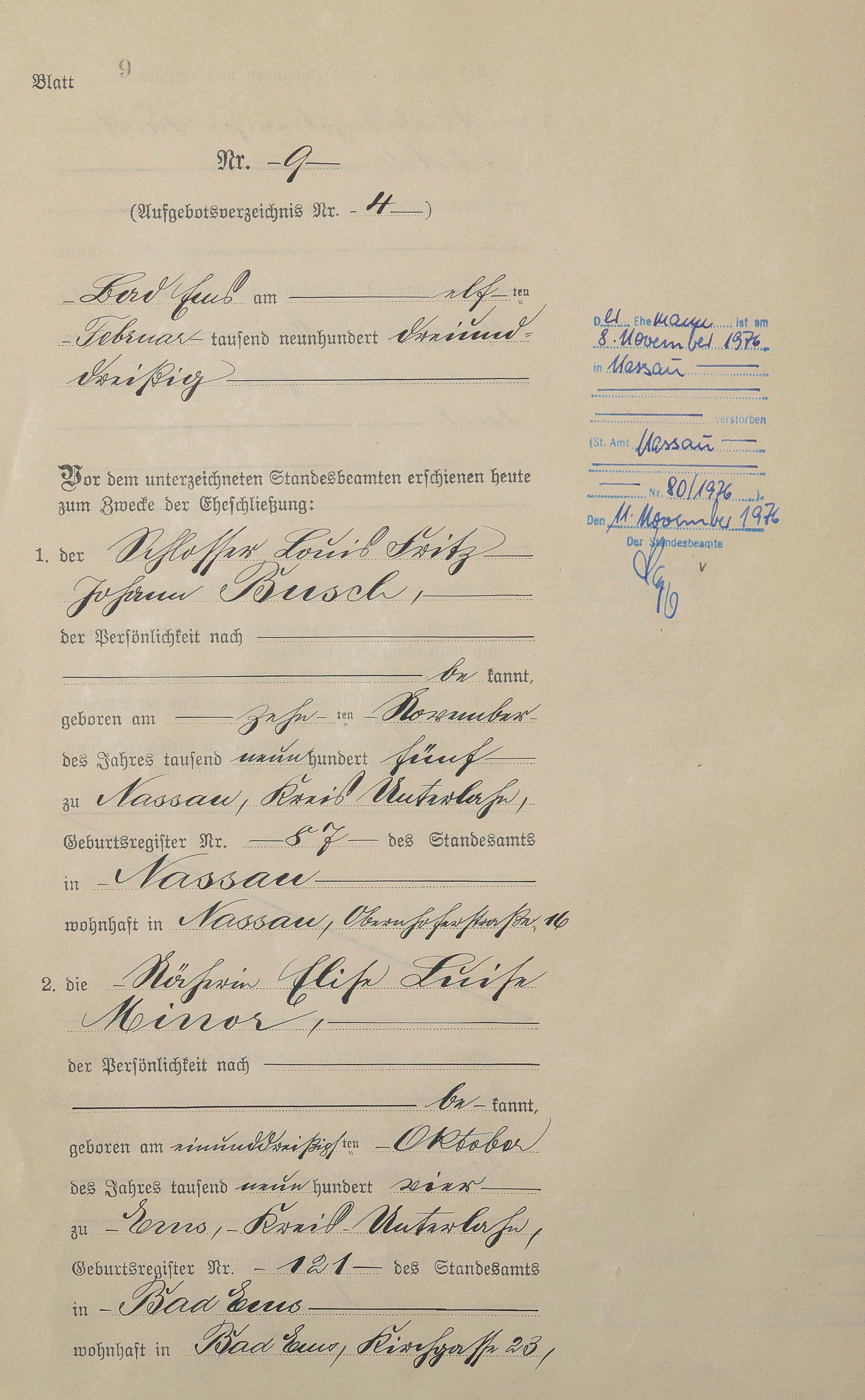 Heiratsregister 1933