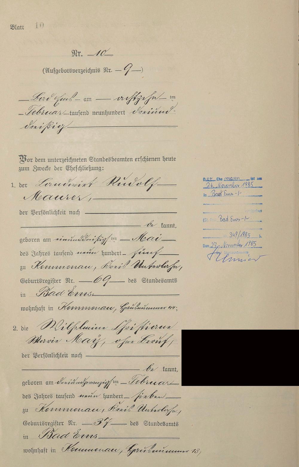 Heiratsregister 1933