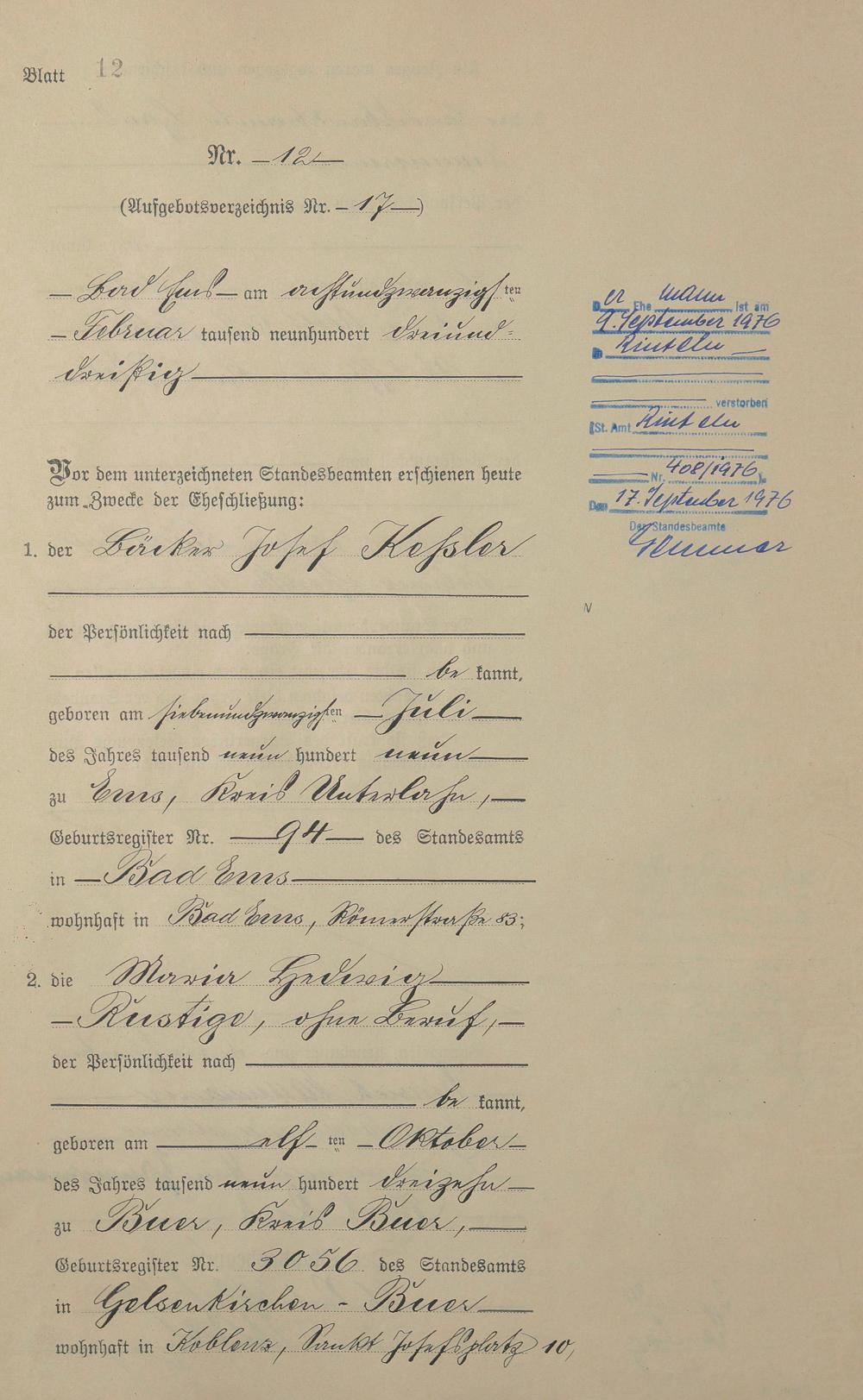 Heiratsregister 1933