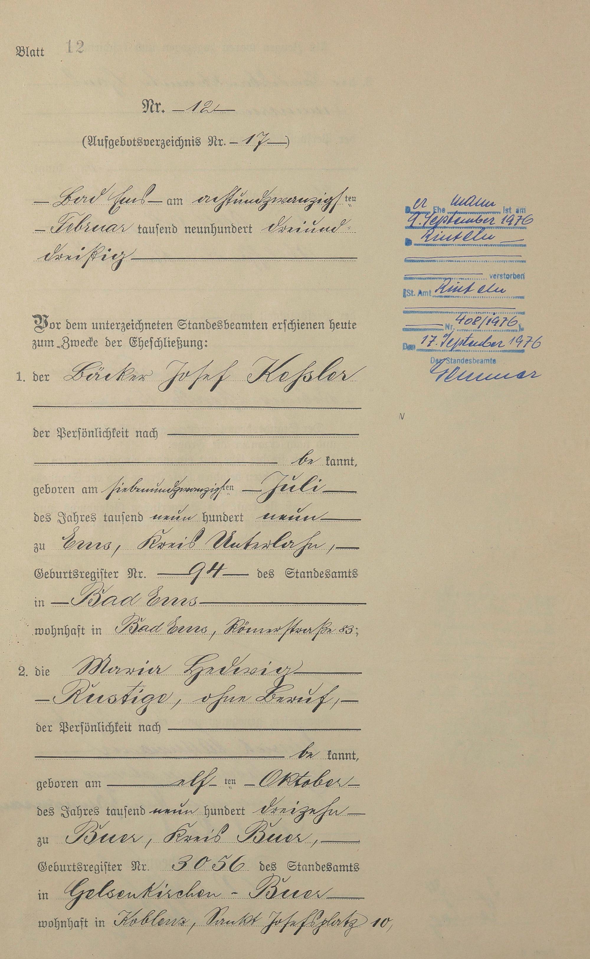 1409: Heiratsregister 1933