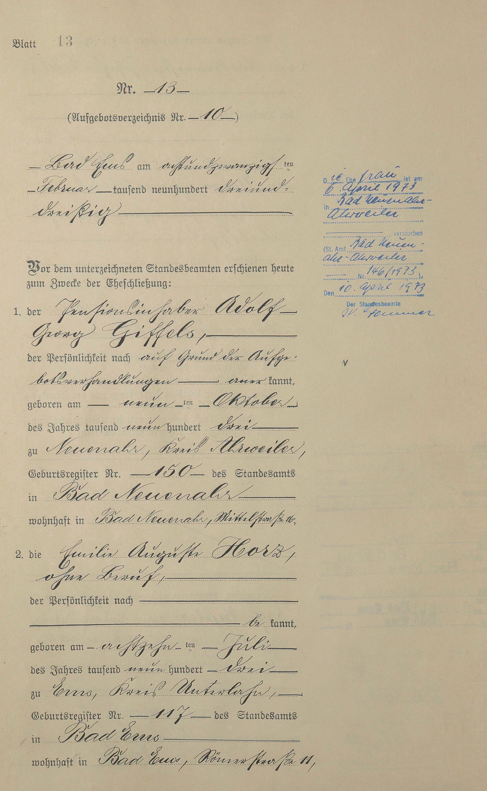 Heiratsregister 1933