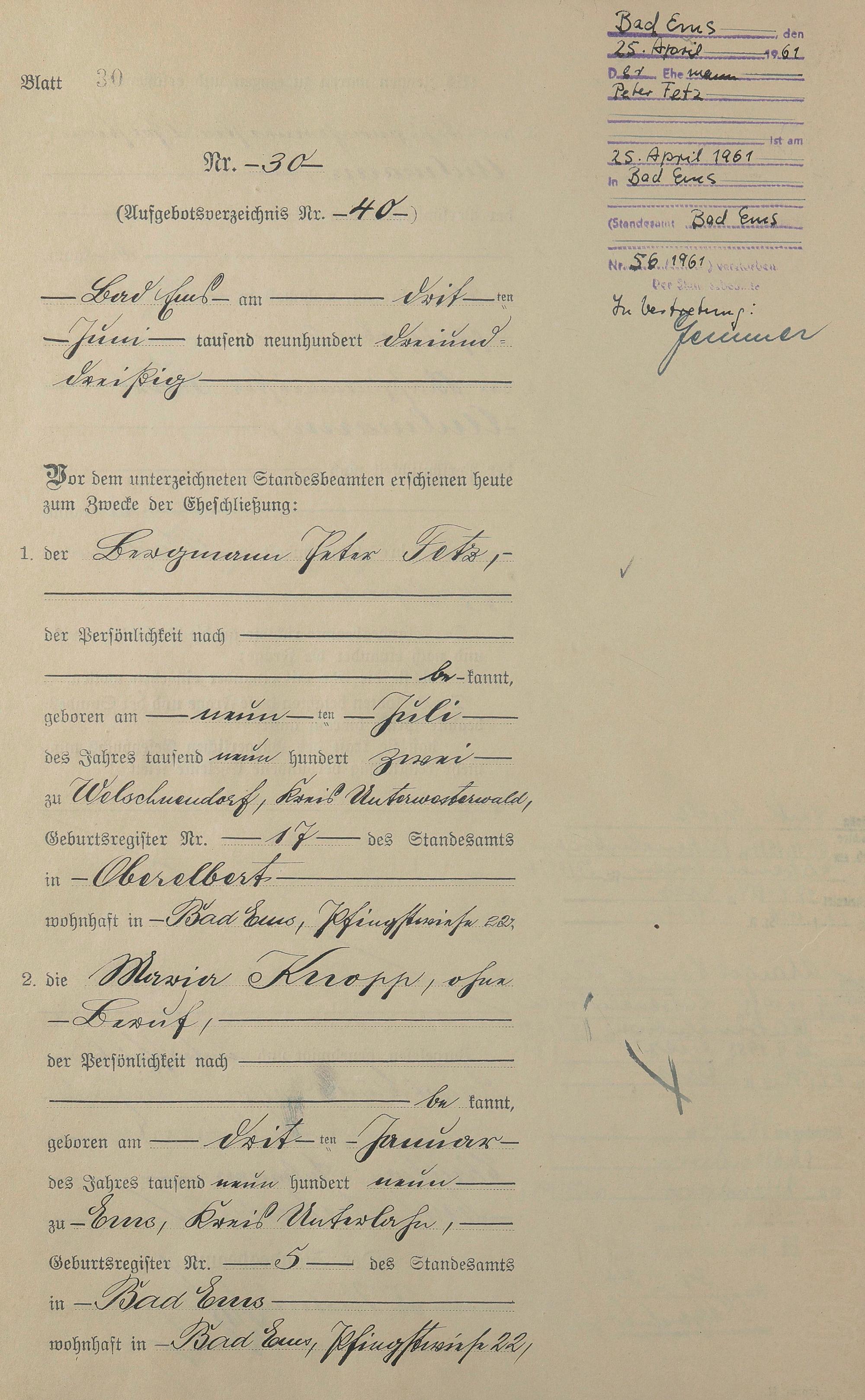 Heiratsregister 1933