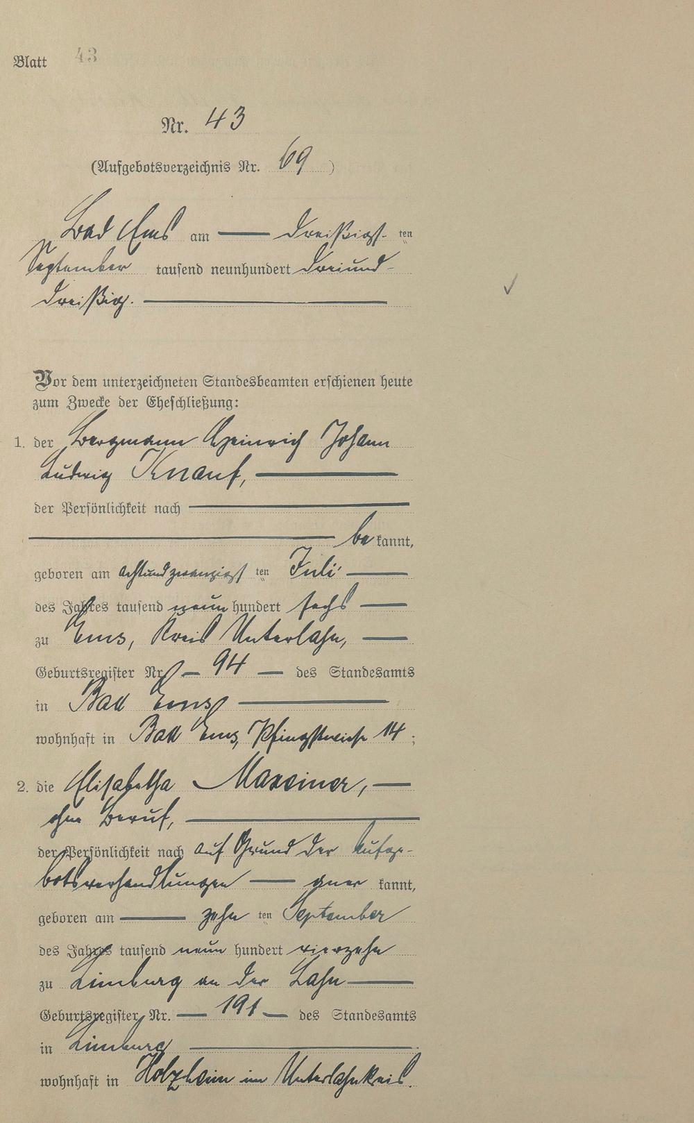 Heiratsregister 1933