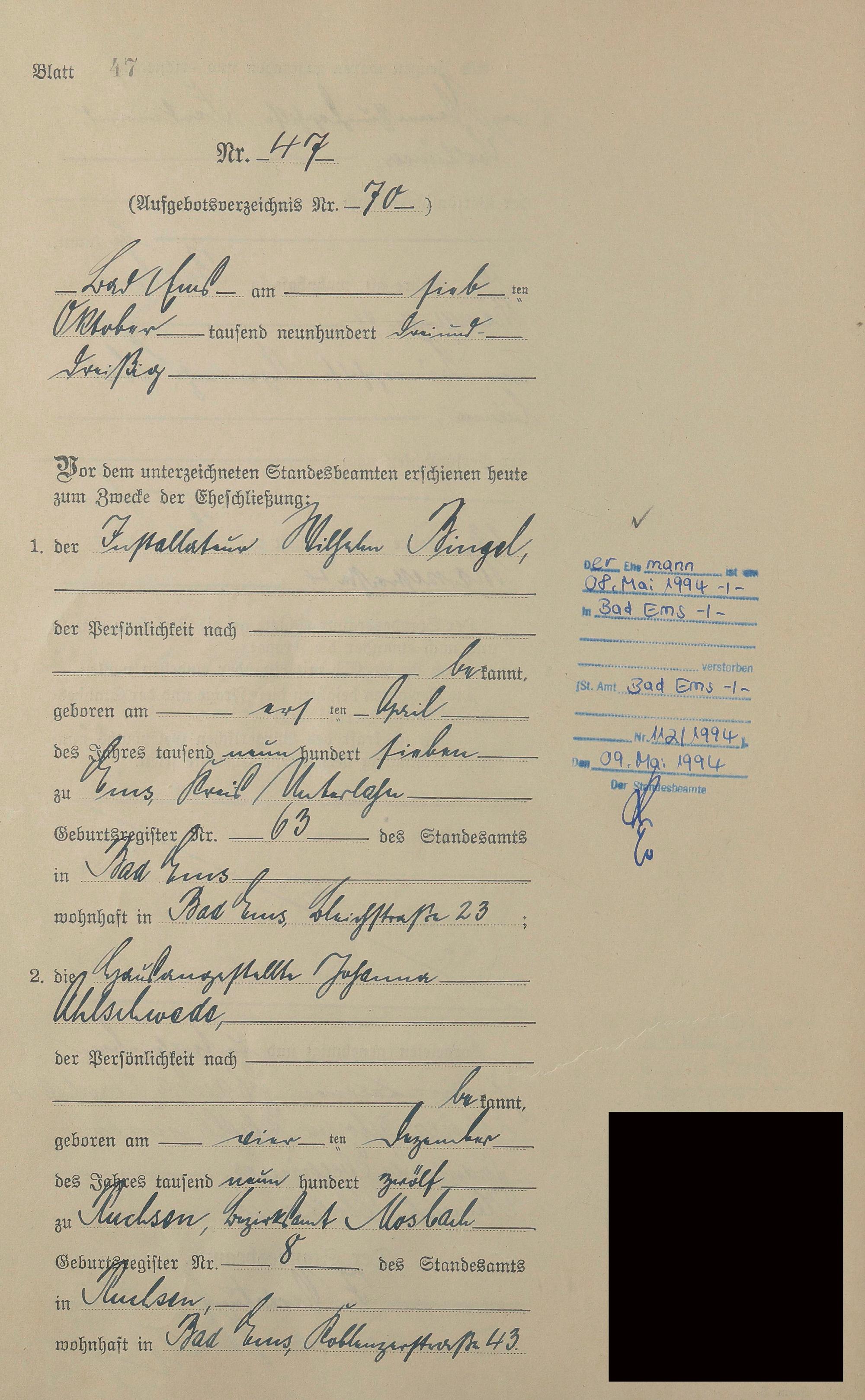 Heiratsregister 1933