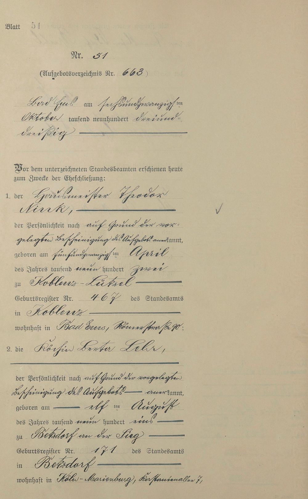 Heiratsregister 1933