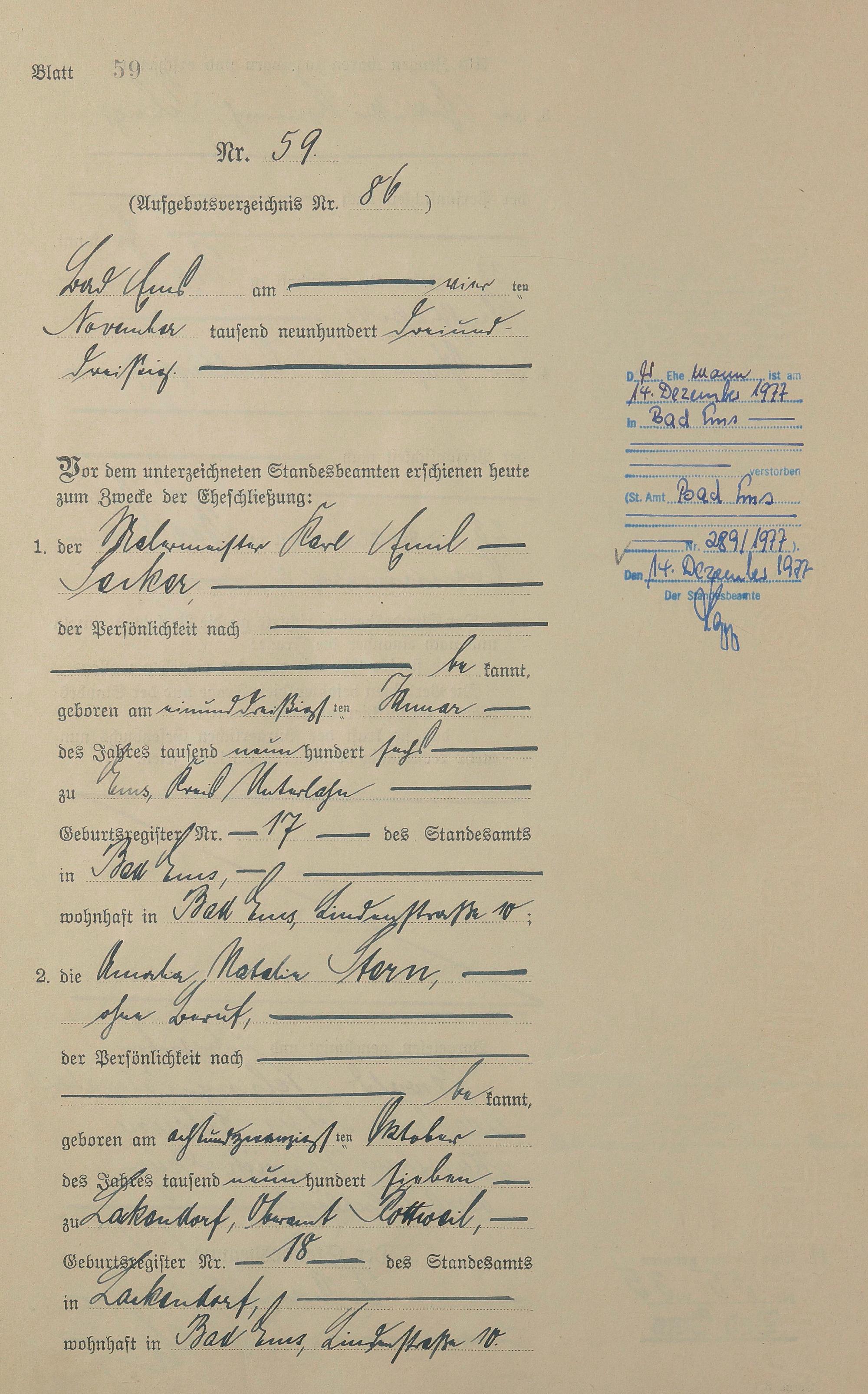 Heiratsregister 1933