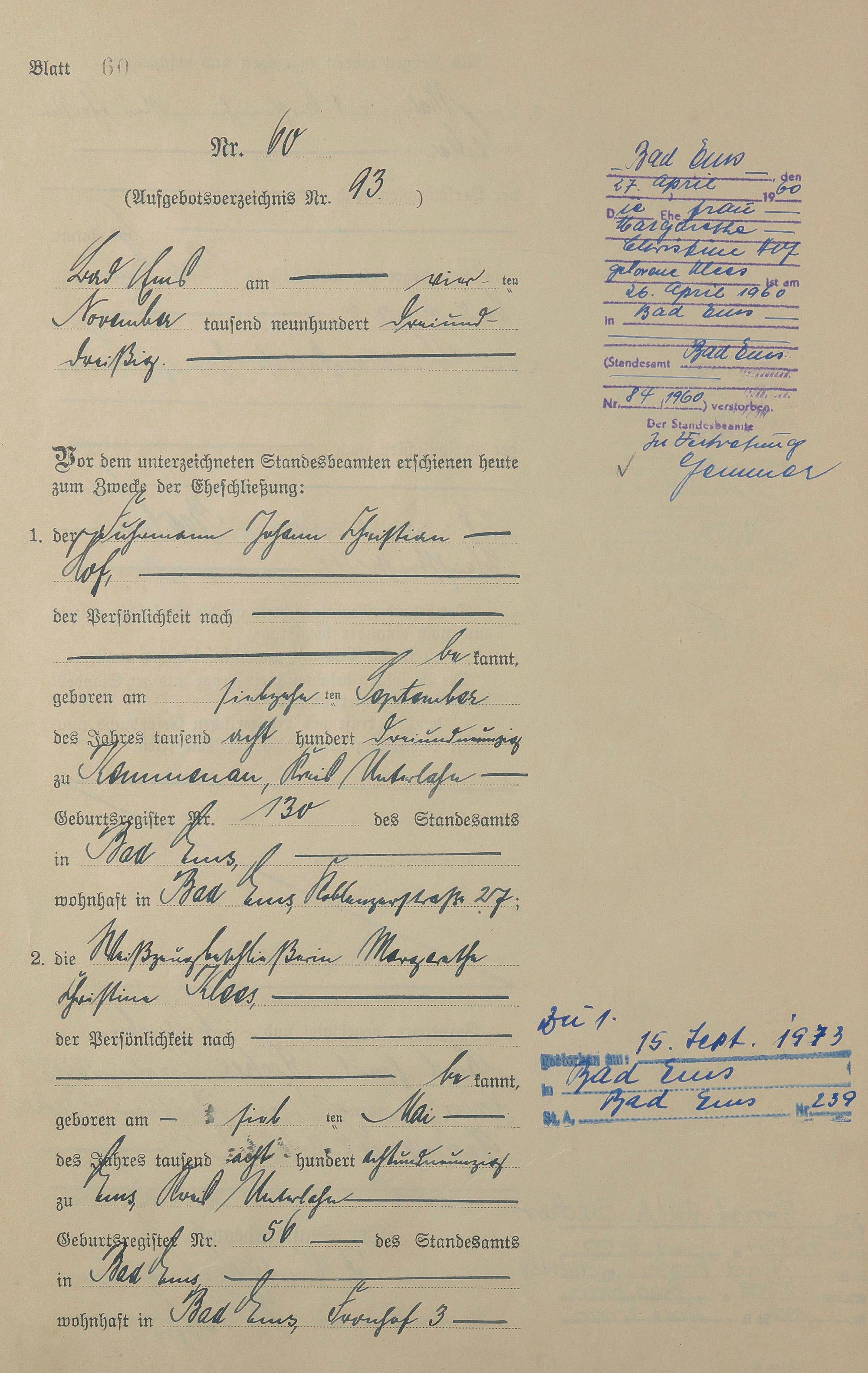 Heiratsregister 1933
