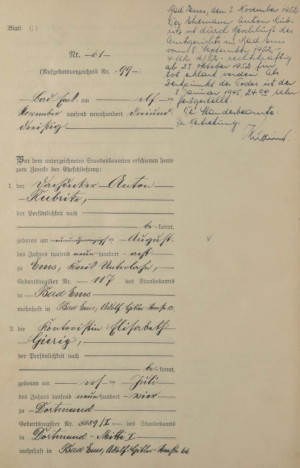 1409: Heiratsregister 1933