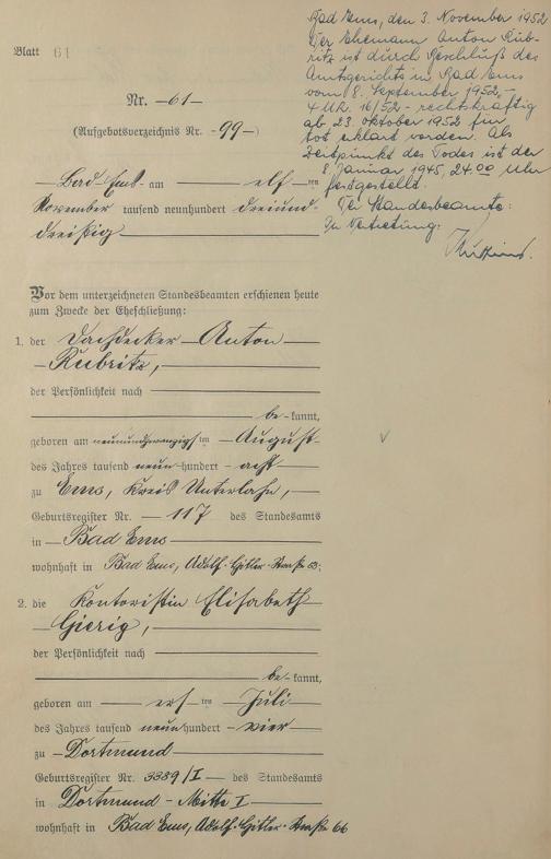 Heiratsregister 1933