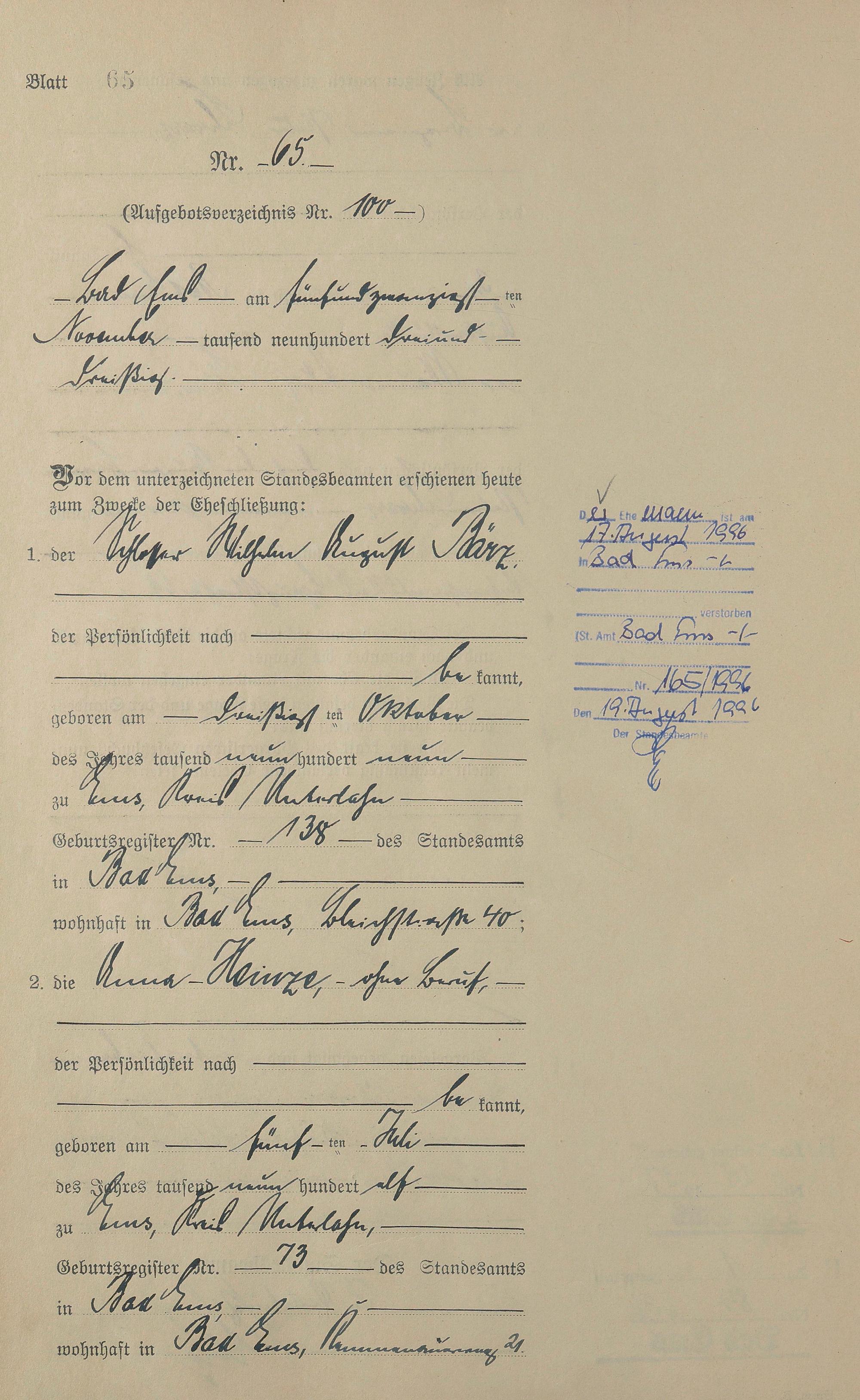 Heiratsregister 1933