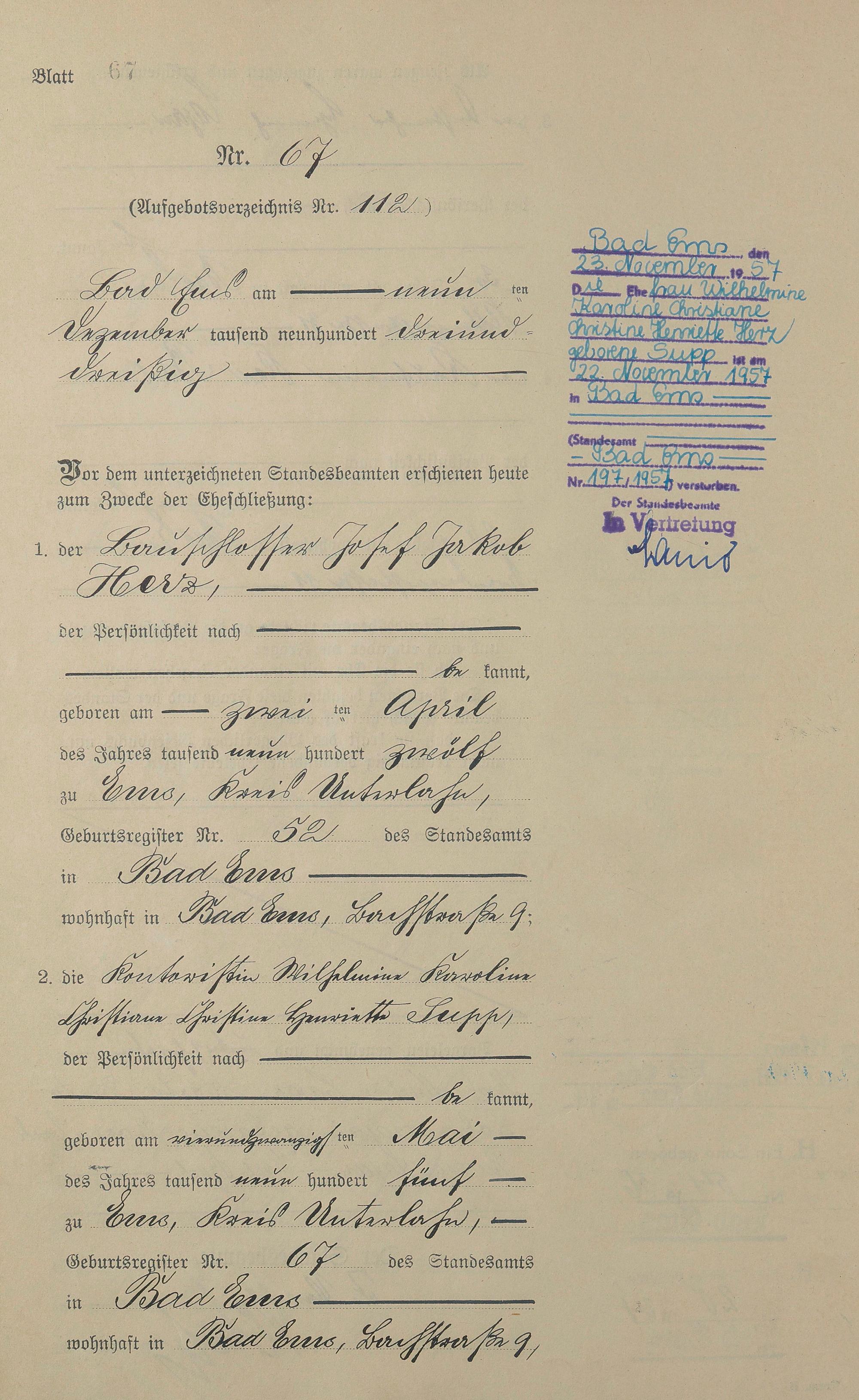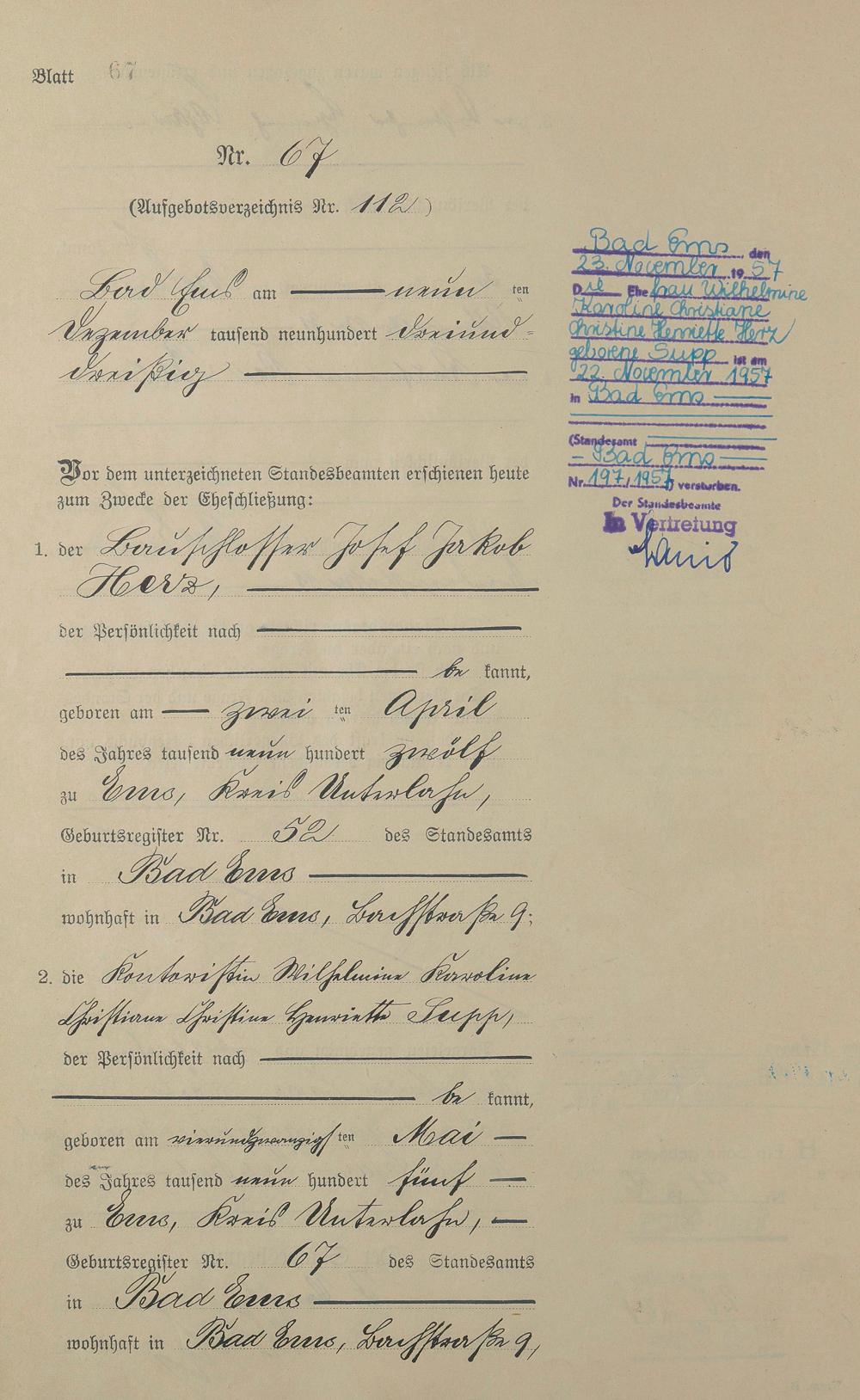 Heiratsregister 1933
