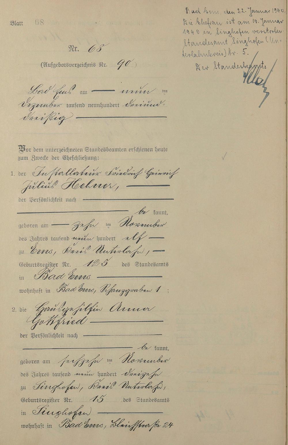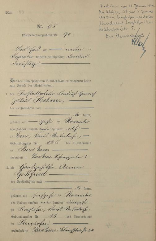 Heiratsregister 1933