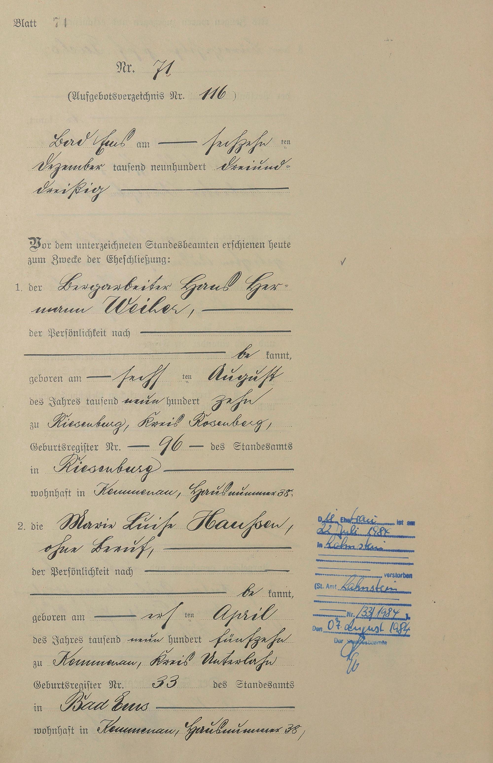 Heiratsregister 1933