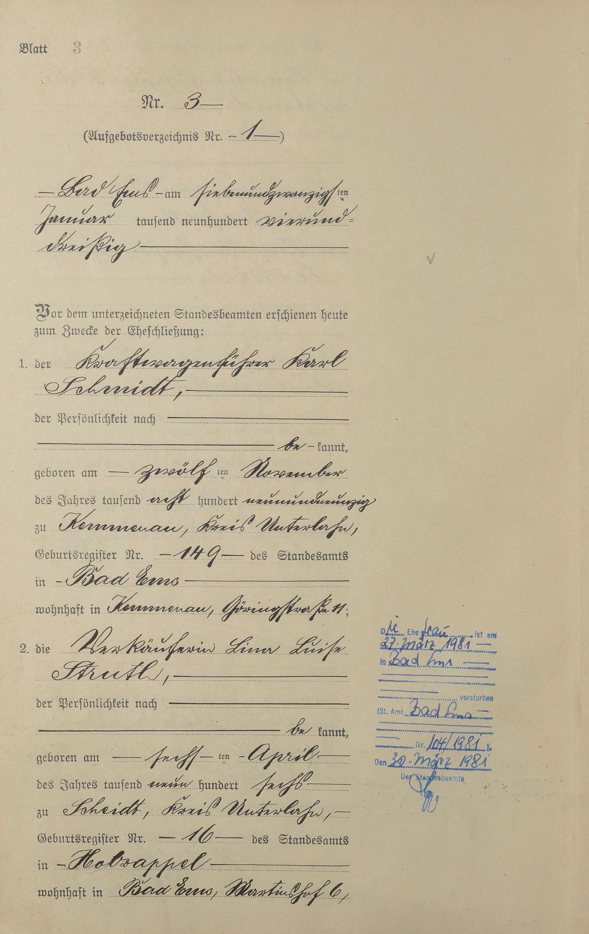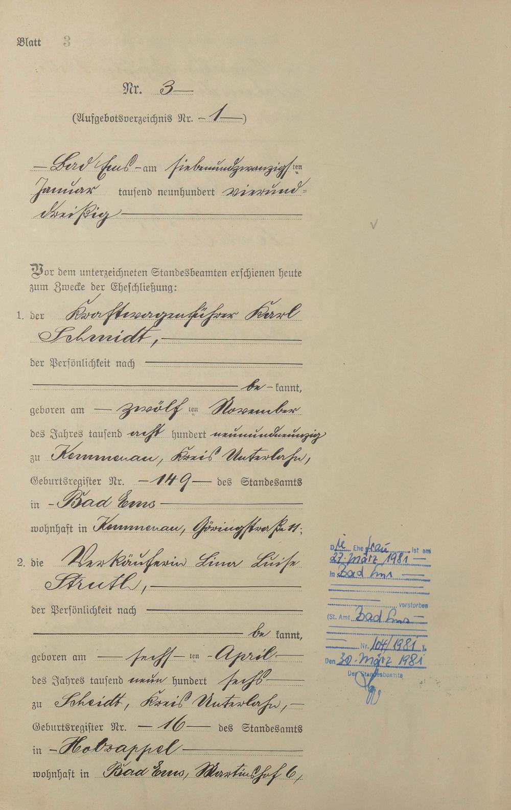 Heiratsregister 1934