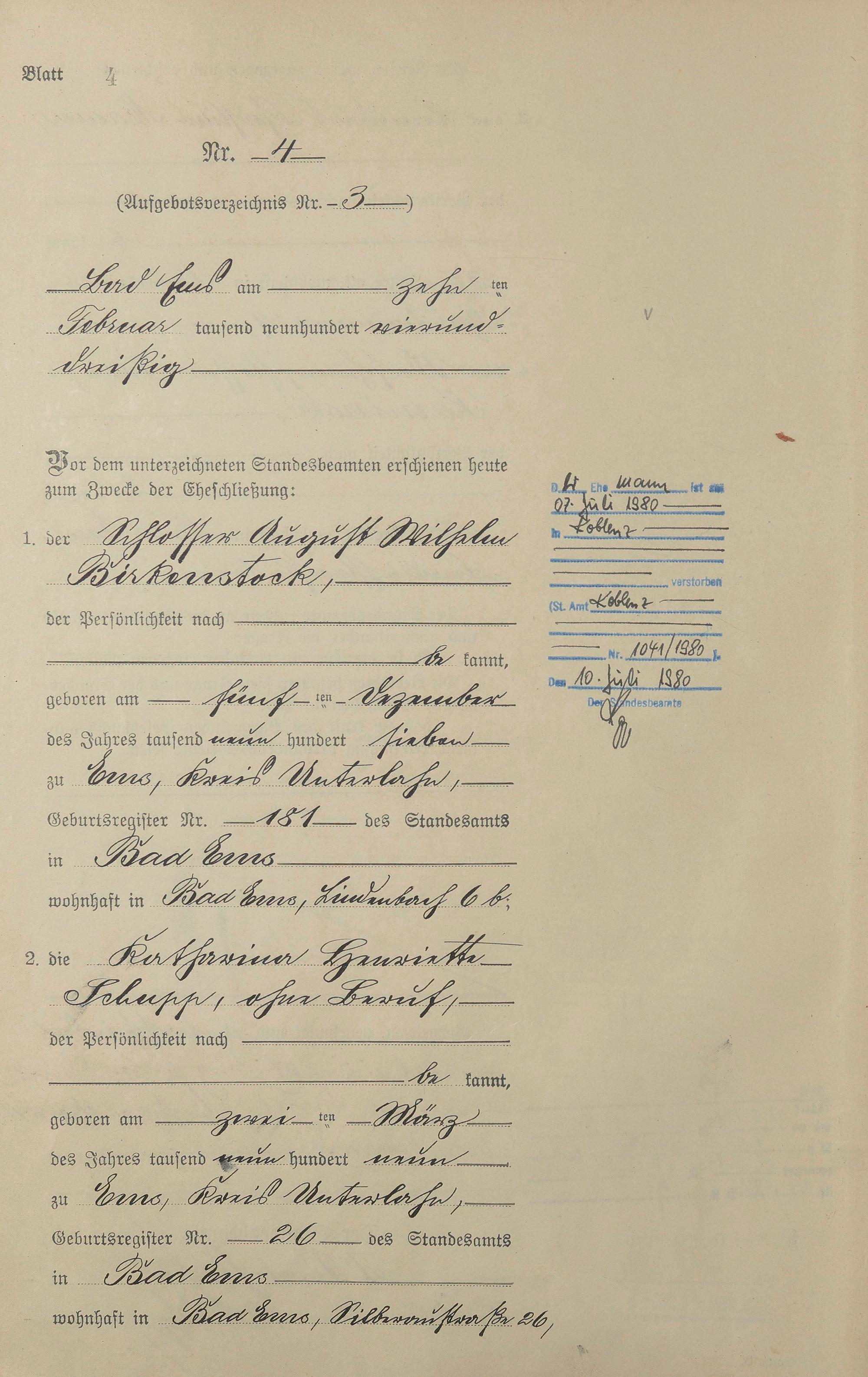 Heiratsregister 1934