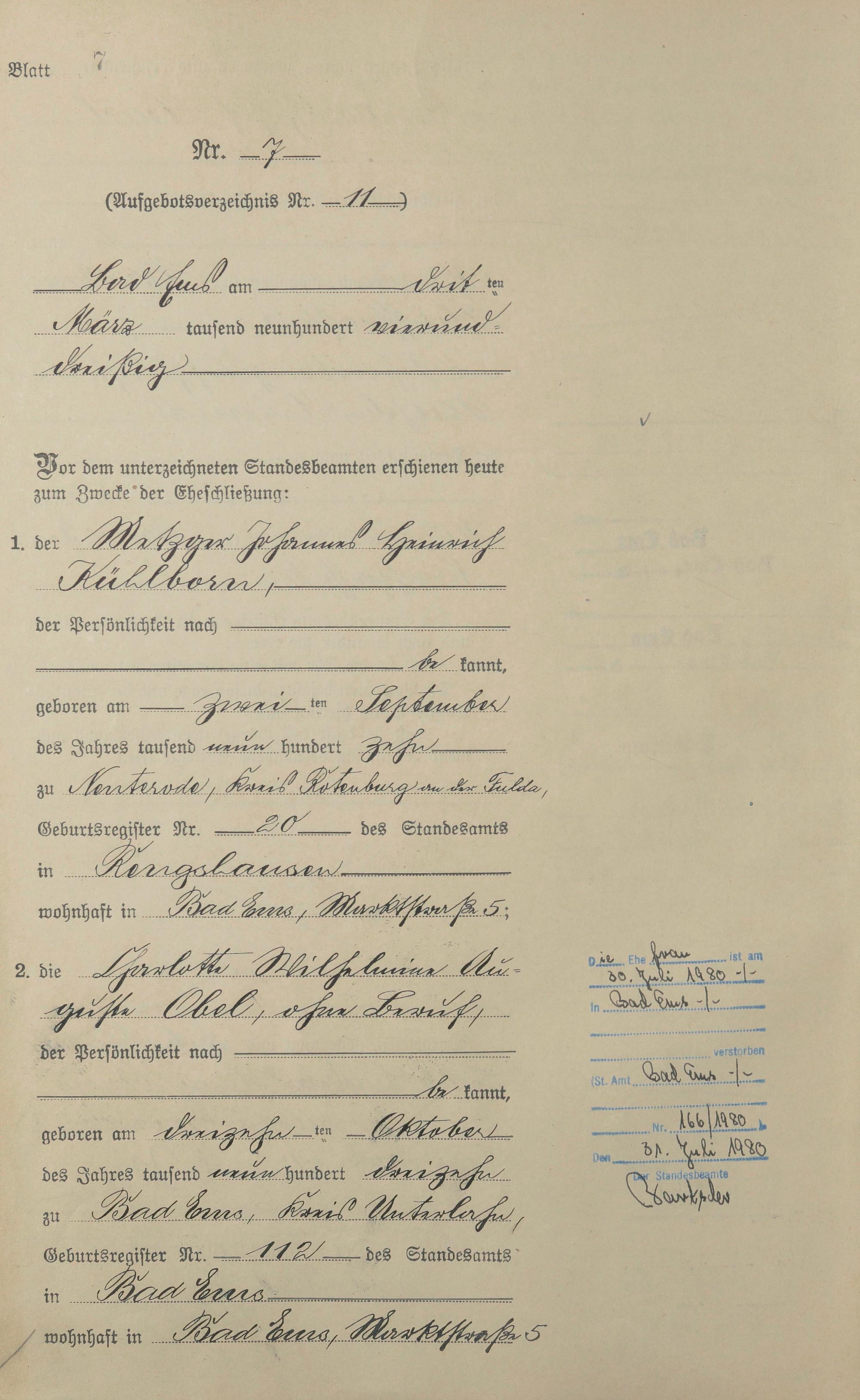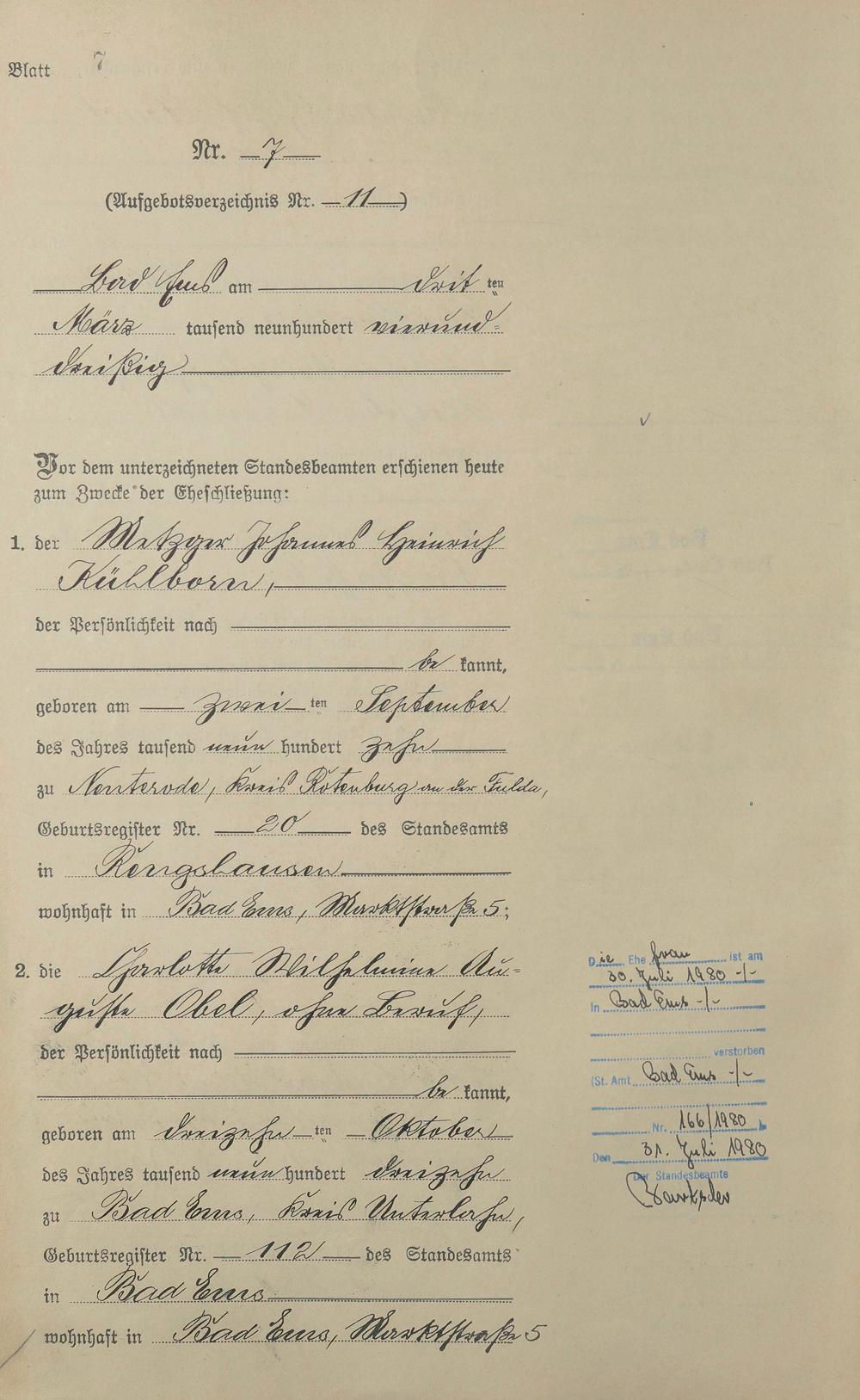 Heiratsregister 1934