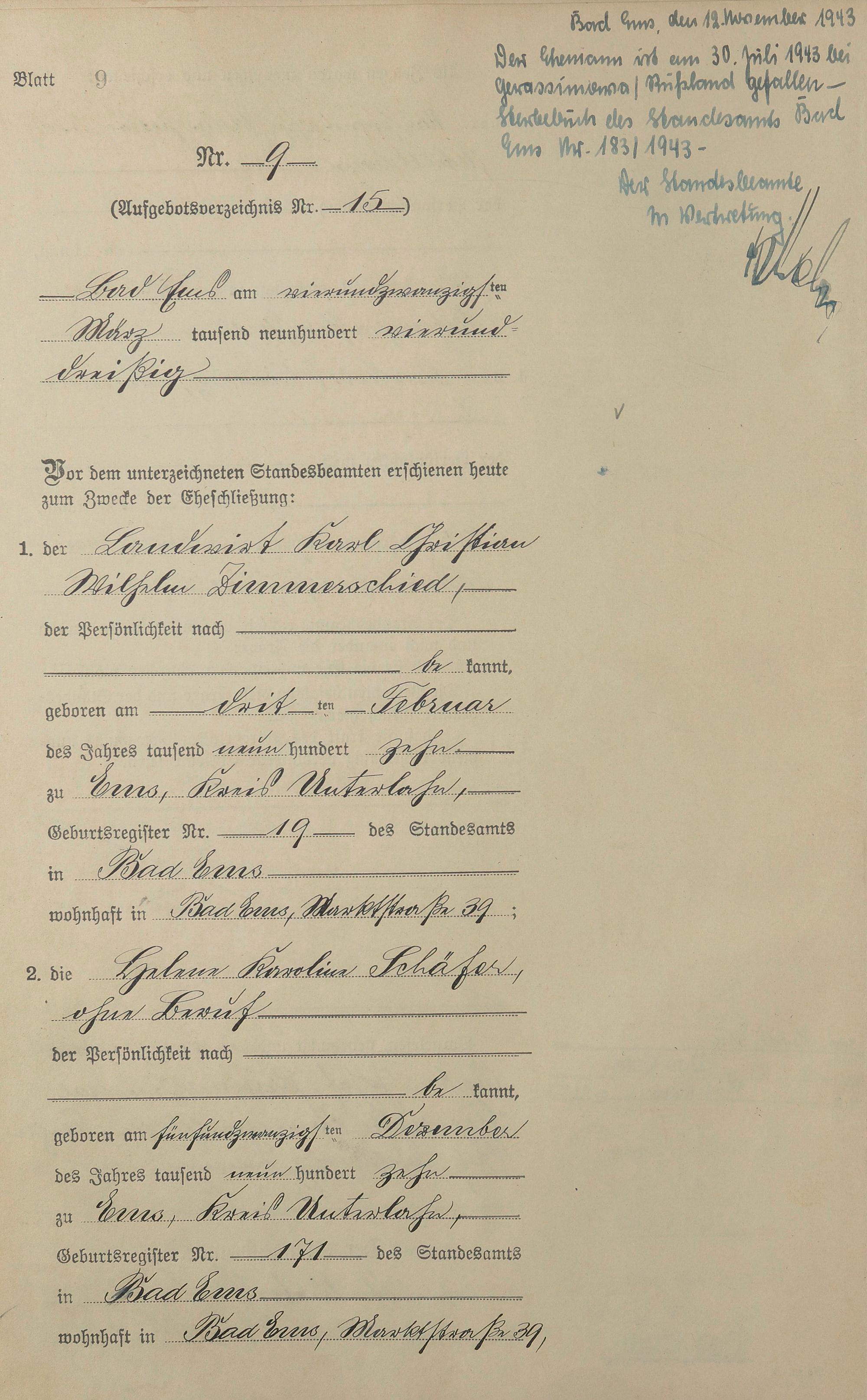 Heiratsregister 1934